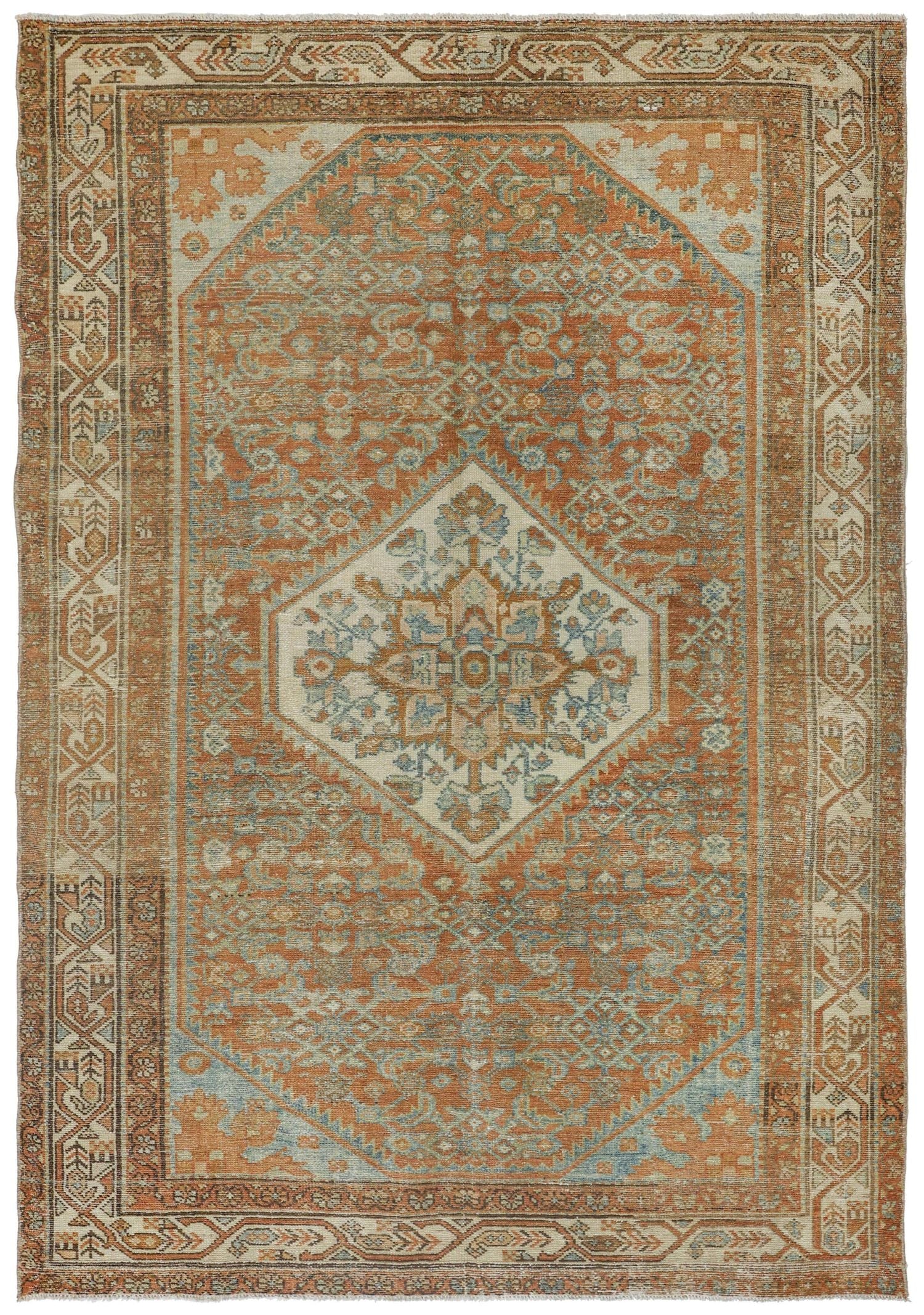 Vintage 1930 Nomadic Persian & Turkish Tribal Persian Hamadan 4' 6" X 6' 5" Orange Rug