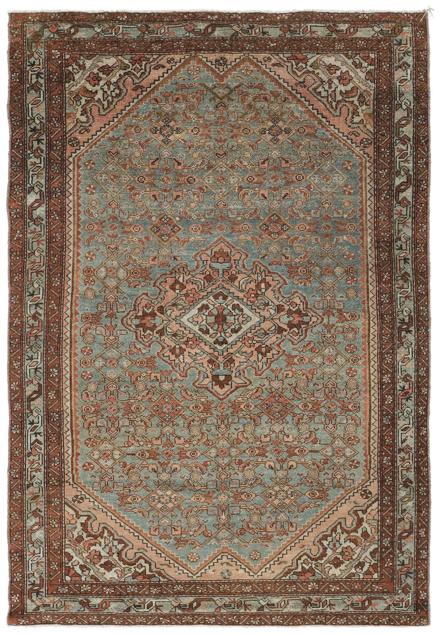 Vintage 1920 Nomadic Persian & Turkish Tribal Persian Hamadan 4' 3" X 6' 3" Blue Rug