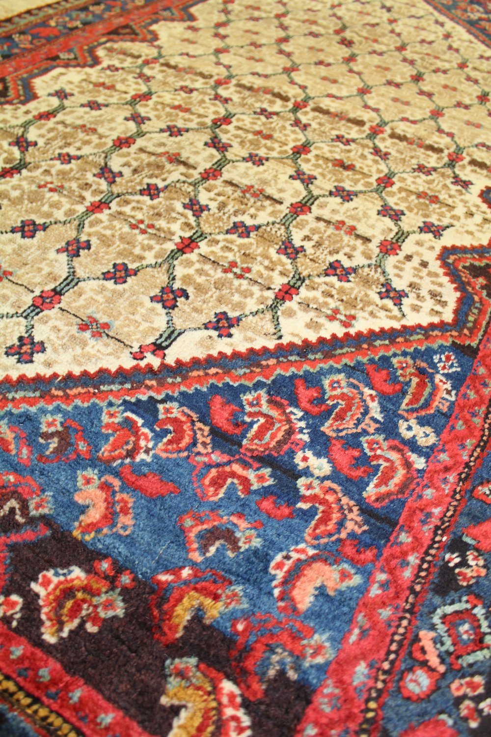 Elevate your room’s style with our Antique Hamadan Handwoven Tribal Rug (JF8168). The tribal Nomadic Persian & Turkish style, with its Hamadan motif, is definitely a stunner that you’ll be proud to show off in your home. Its distinctive beige, camel and blue palette will add charm, elegance, and that little bit of that ever-elusive je ne sais quoi. Plus, the wool pile on a cotton foundation used in this 5' 0" X 8' 1" rug accentuates its allure. But, this rug isn’t just worthy of gracing the pages of a design magazine. With its masterful Persian handwoven construction, this antique rug from around 1890 will be a prized possession for decades to come. Get your own show-stopping Antique Hamadan Handwoven Tribal Rug today!