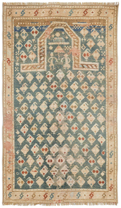 Vintage 1900 Caucasian Tribal Caucasian 2' 1" X 3' 8" Blue Rug