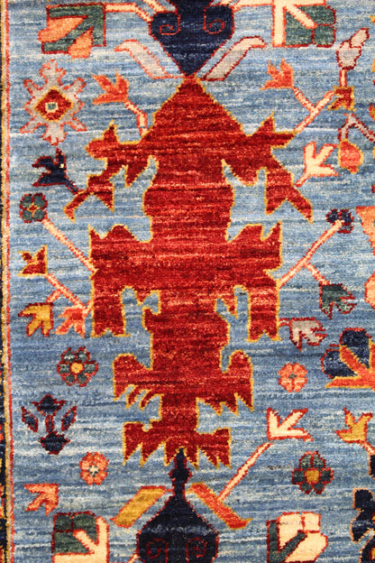 Looking to take your home’s interior design up a notch (or several)? Nothing does it better than a striking statement piece — such as our luxurious Harshang Handwoven Tribal Rug (J62639). This 6' 2" X 8' 9" tribal Nomadic Persian & Turkish rug has a Harshang design in blue, light blue and rust. Constructed of wool pile on a cotton foundation, you know that this rug not only looks great but feels nice and will stand the tests of time and traffic. Quality and style are hallmarks of new handwoven Afghani rugs — so you’ll be admiring this one for years to come! All you have to do is claim your Harshang Handwoven Tribal Rug today.