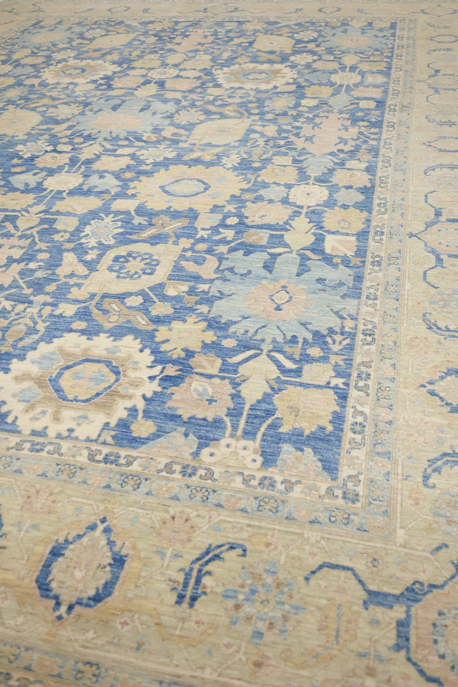 Delving into the craftsmanship of this rug, we find a knots per square inch (KPSI) count of 104, demonstrating the meticulous attention to detail in its creation. By calculating the KPSI, we estimate that this exceptional item showcases an impressive total of 1,535,281 individually hand-tied knots.