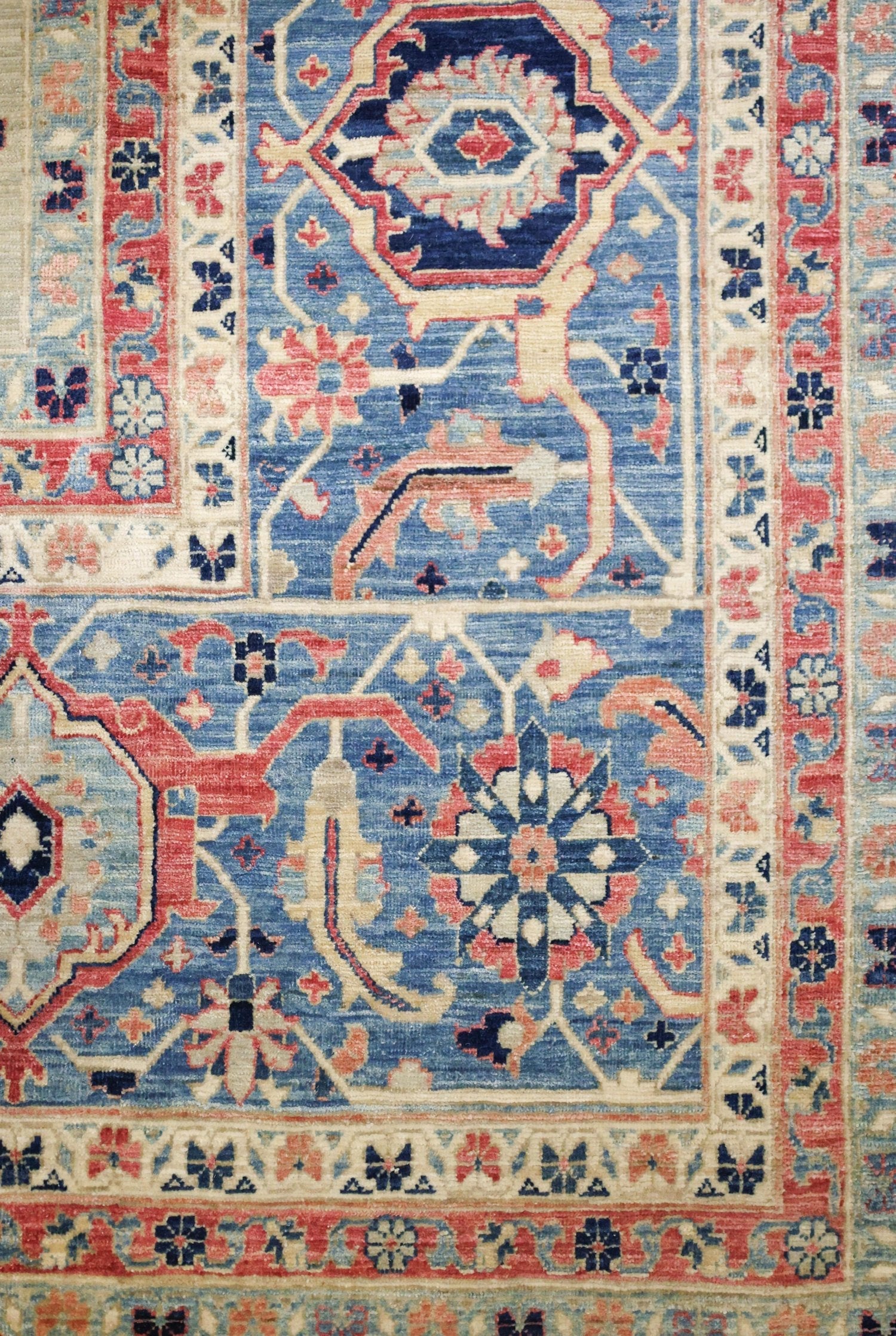 To further showcase the skill and dedication of the weavers, the rug is adorned with centuries-old all-natural dye stuffs. This authentic use of dyes imparts a richness and depth of color that cannot be replicated with synthetic materials.