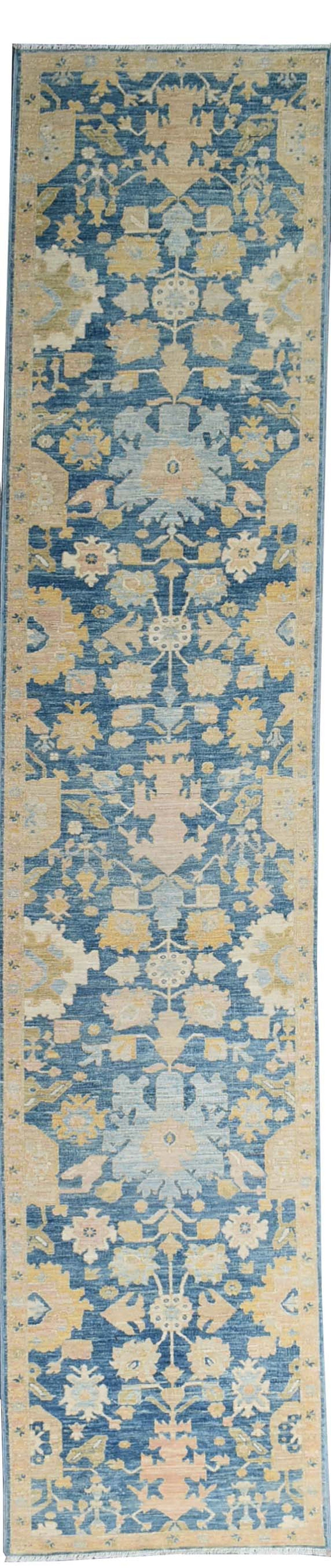 New Nomadic Persian & Turkish Tribal Afghani Harshang 2' 7" X 13' 8" Blue Rug
