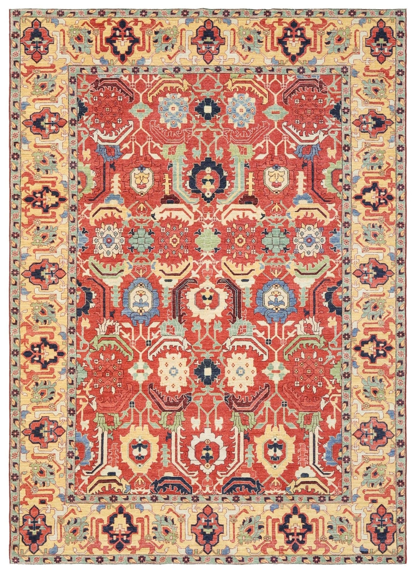 New Nomadic Persian & Turkish Tribal Afghani Herat 8' 11" X 12' 7" Wool On Cotton Rug