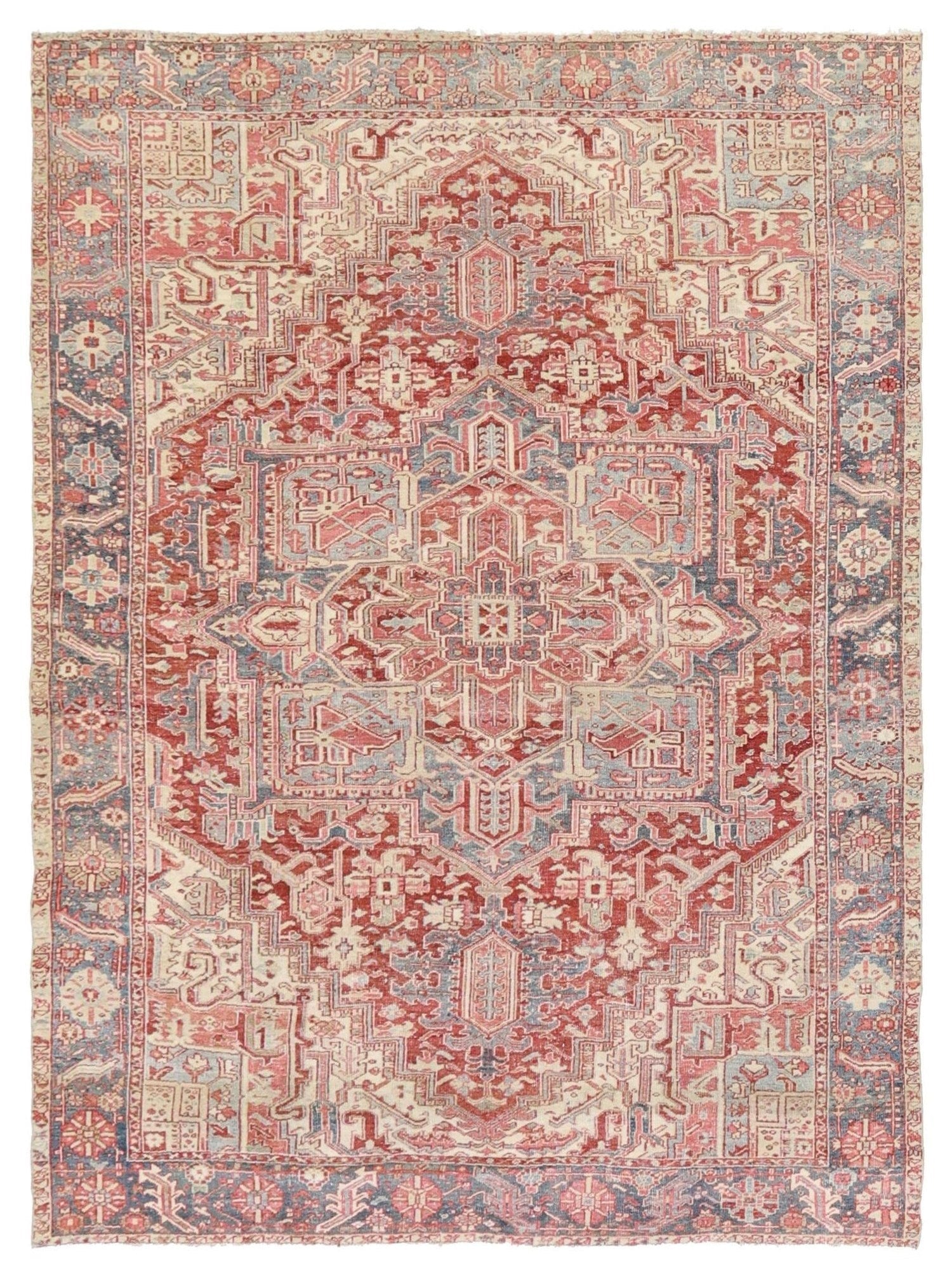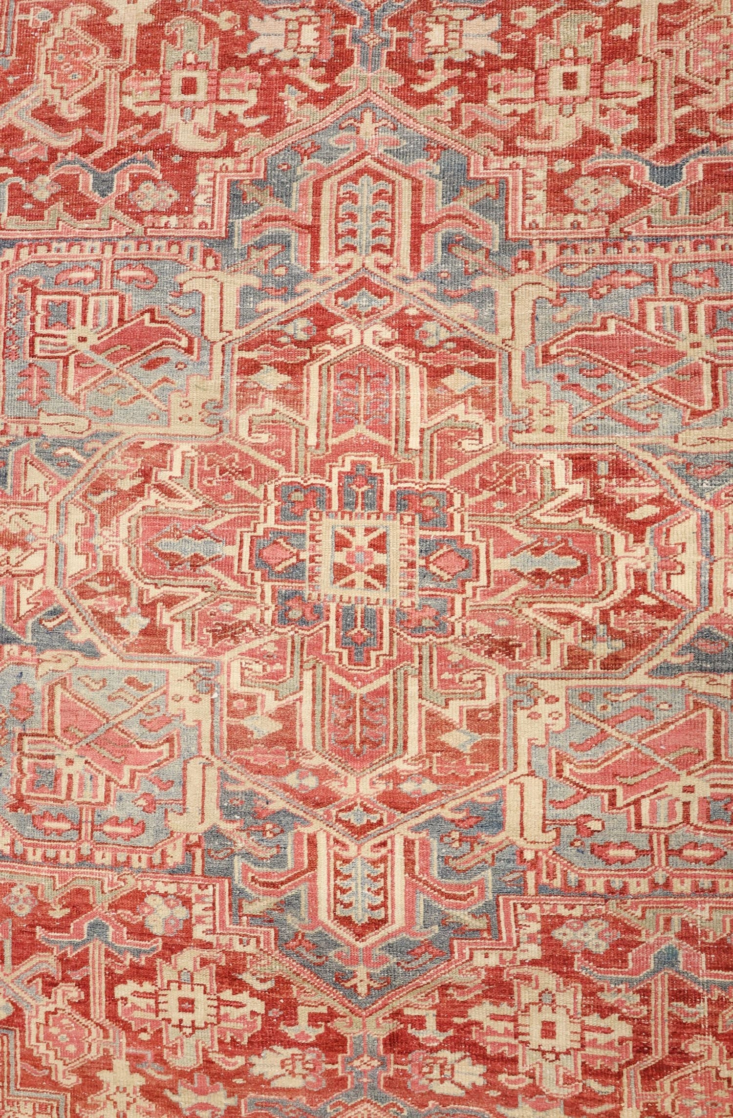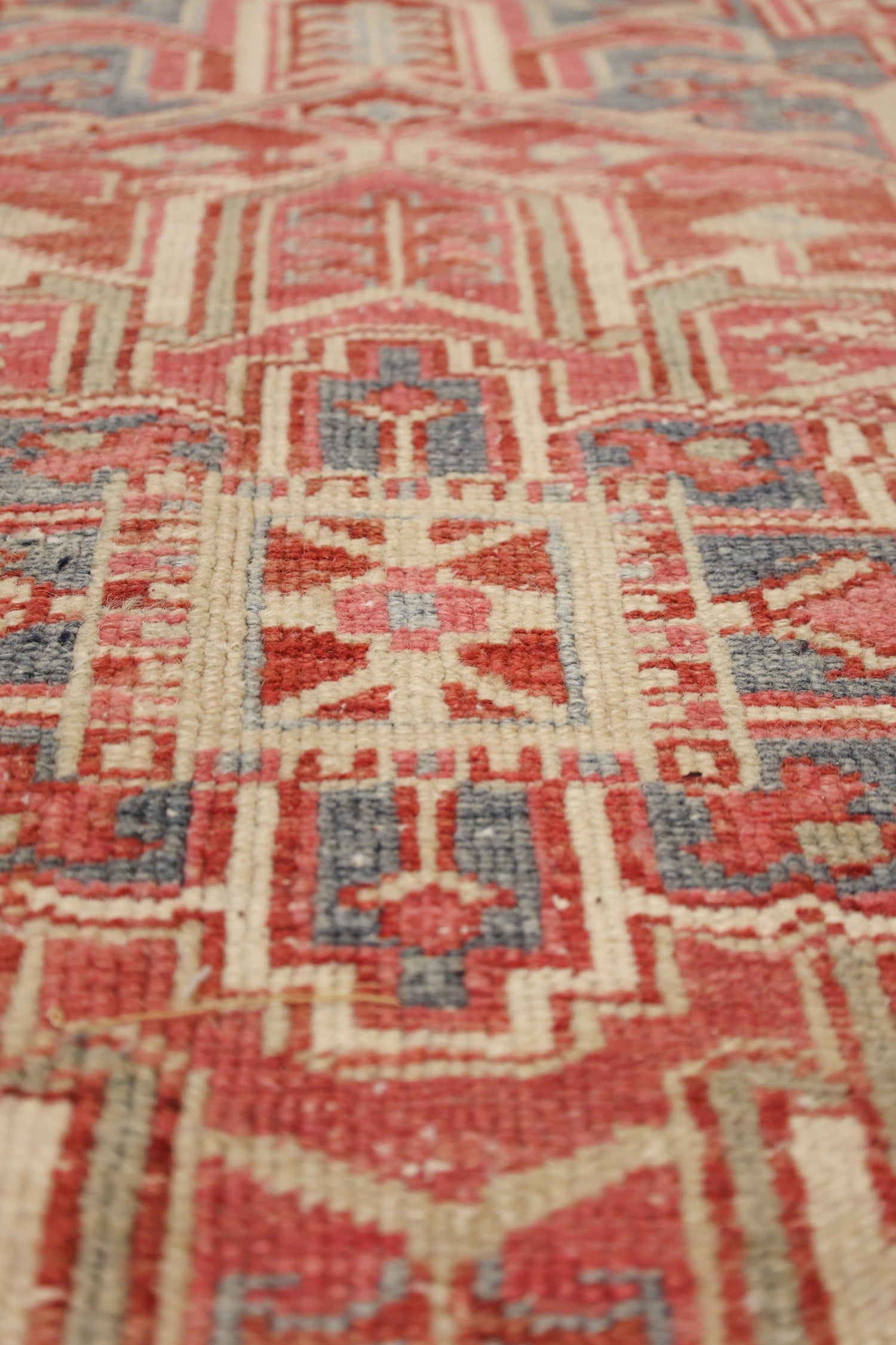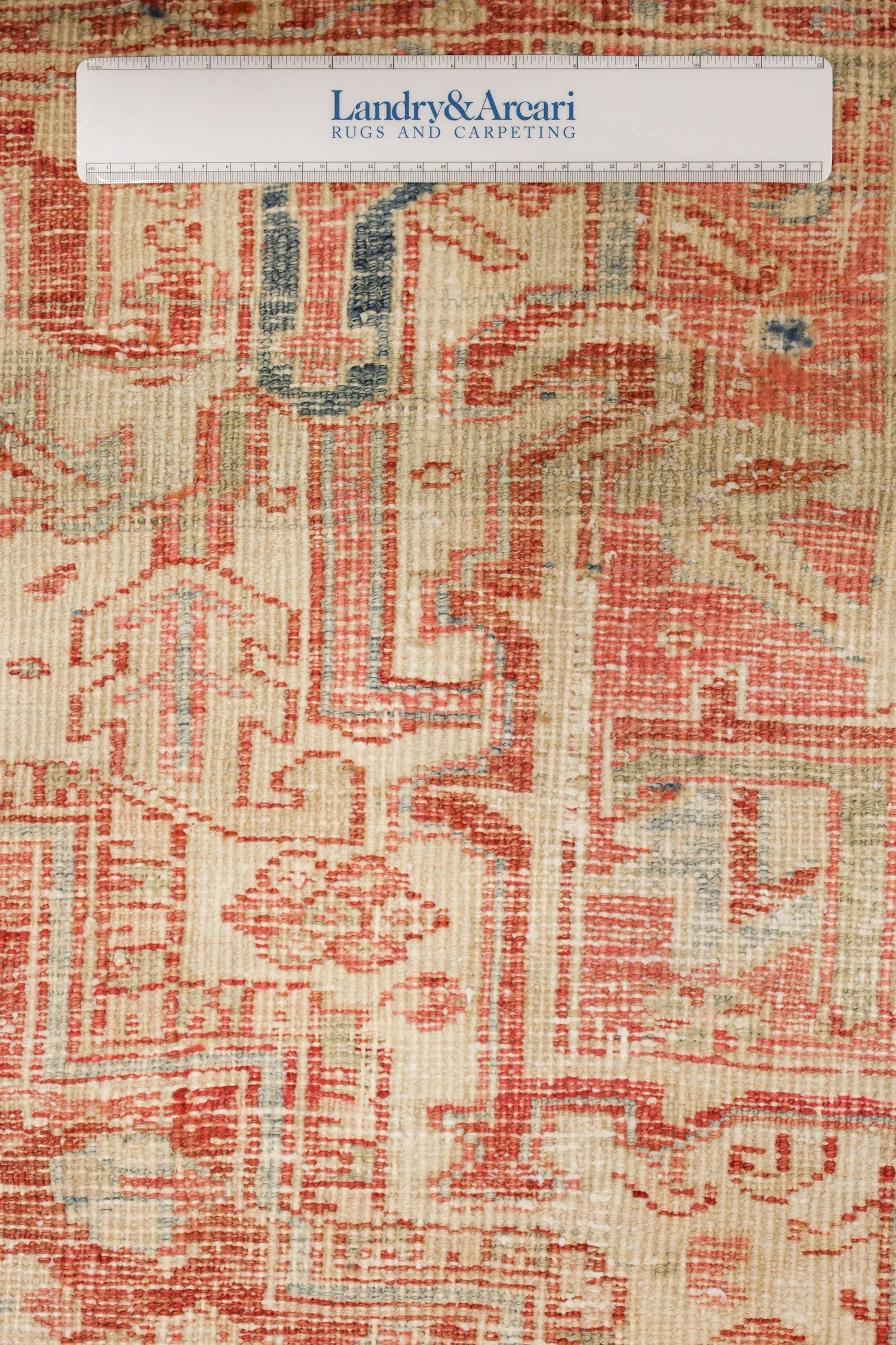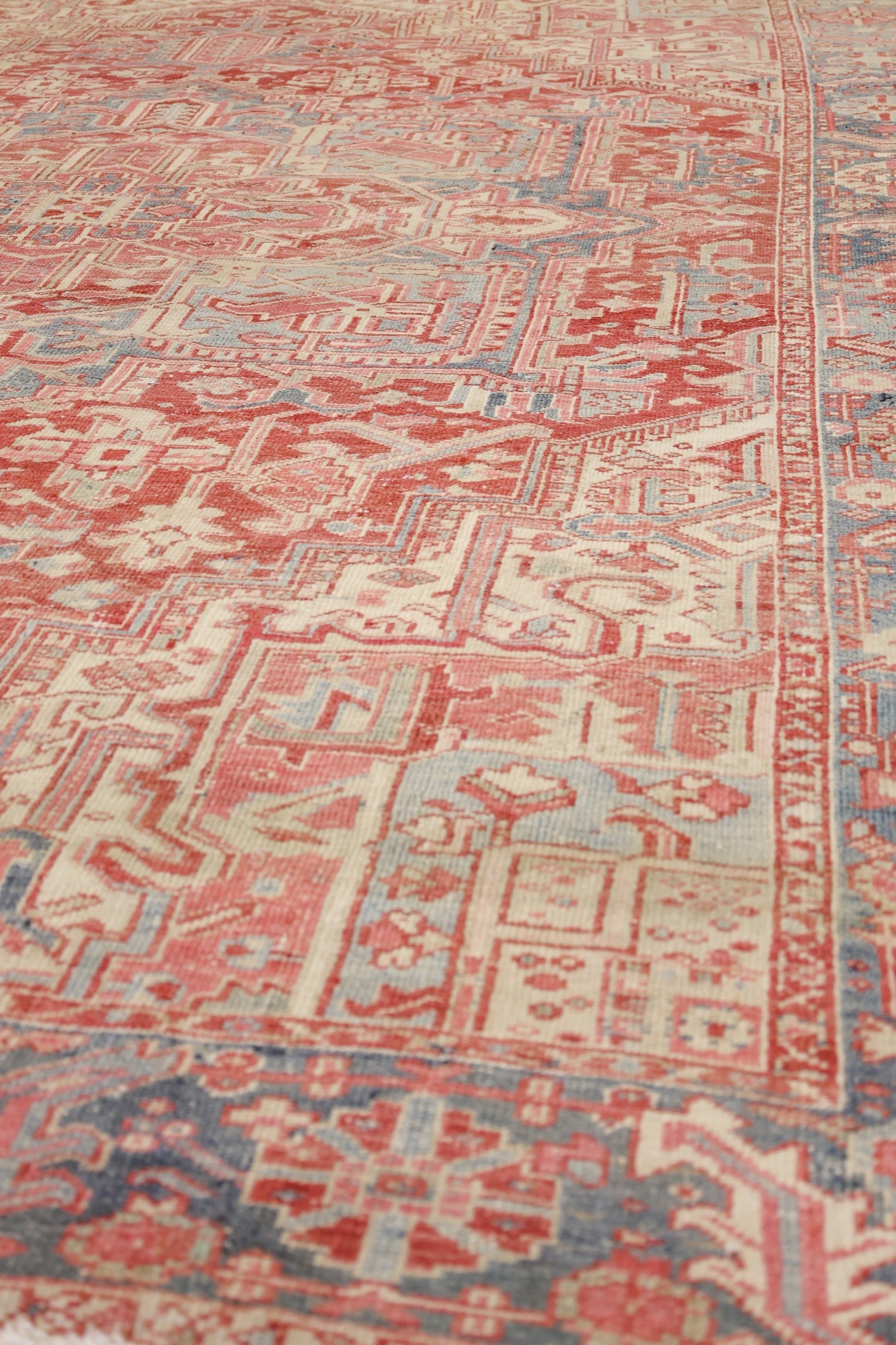 Starting from the rug's origin, it presents itself as a beautiful Persian creation boasting a Heriz design, which clearly indicates its roots from the northwestern region of Iran. Known for their exceptional durability and distinct style, rugs from Heriz area are a delightful blend of functionality and aesthetics. The design style is not just a random selection but holds deep cultural connotations.