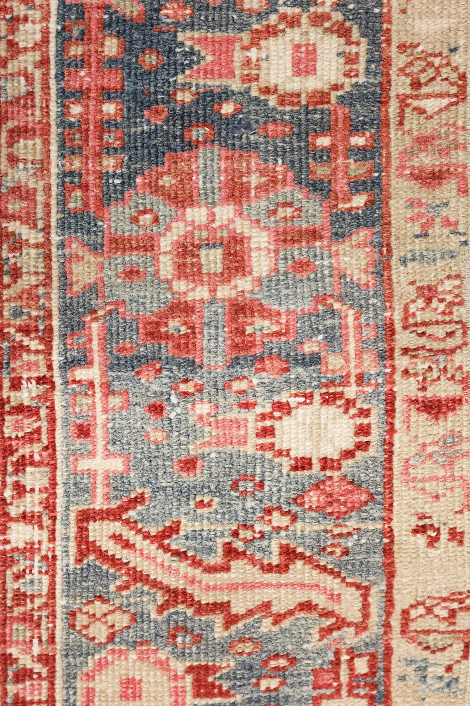 The year 1930 marks the epoch of this rug's origin which classifies it as a vintage piece. Although this rug showcases an aged appearance, it doesn't compromise on the symmetrical aesthetics and intricacy of the design elements. The vintage appeal of the rug is further enhanced by its meticulous border designs. These border designs are a testament to the artisan's dedication and close attention to detail in the creation of the rug.