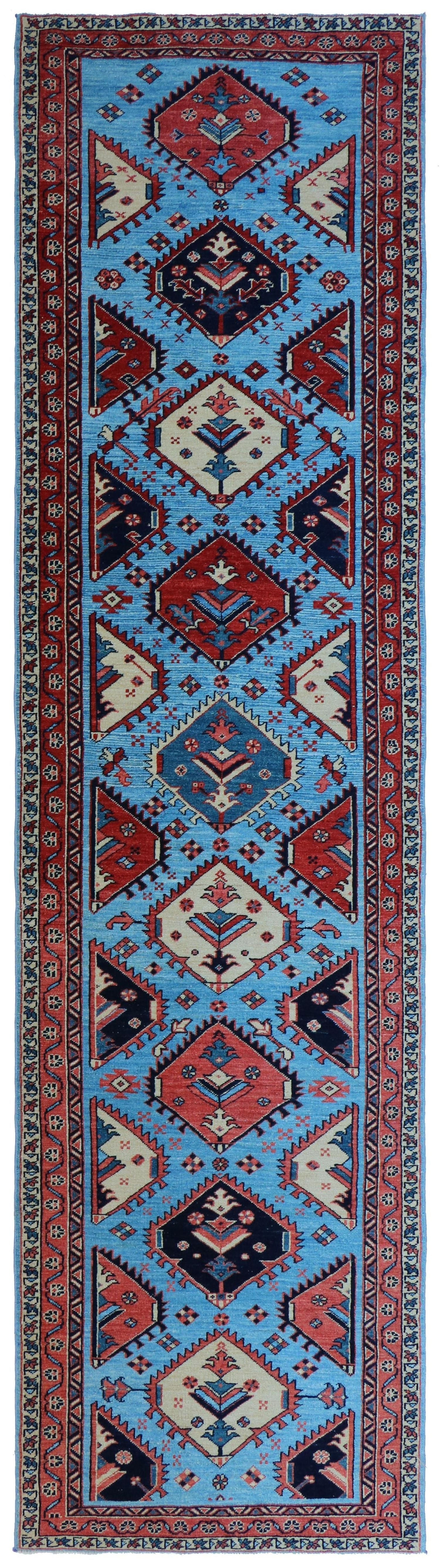 New 1920 Nomadic Persian & Turkish Tribal Persian Heriz 3' 0" X 11' 3" Wool On Cotton Rug
