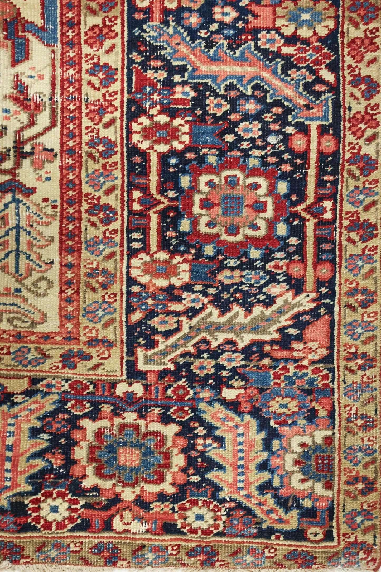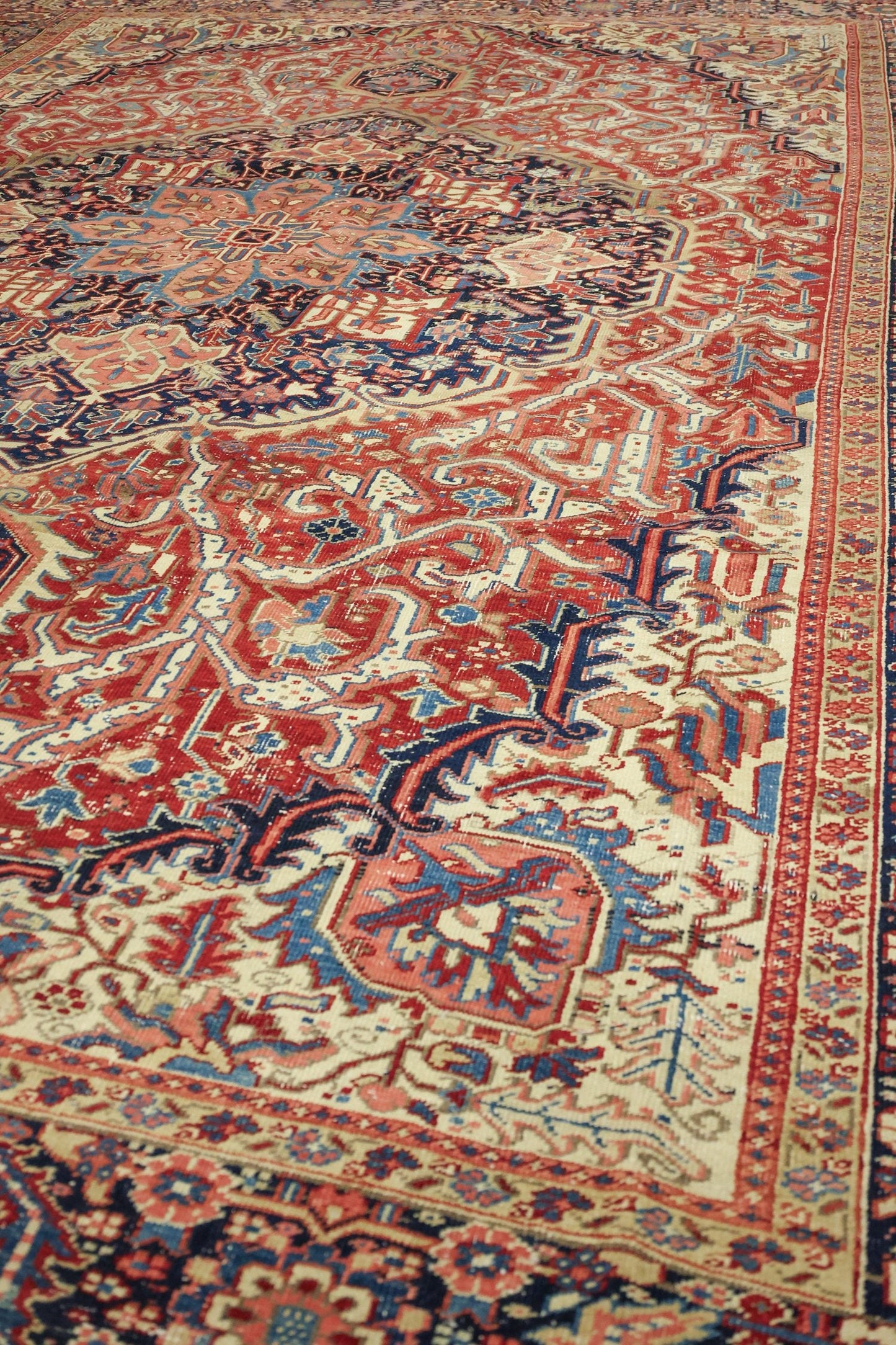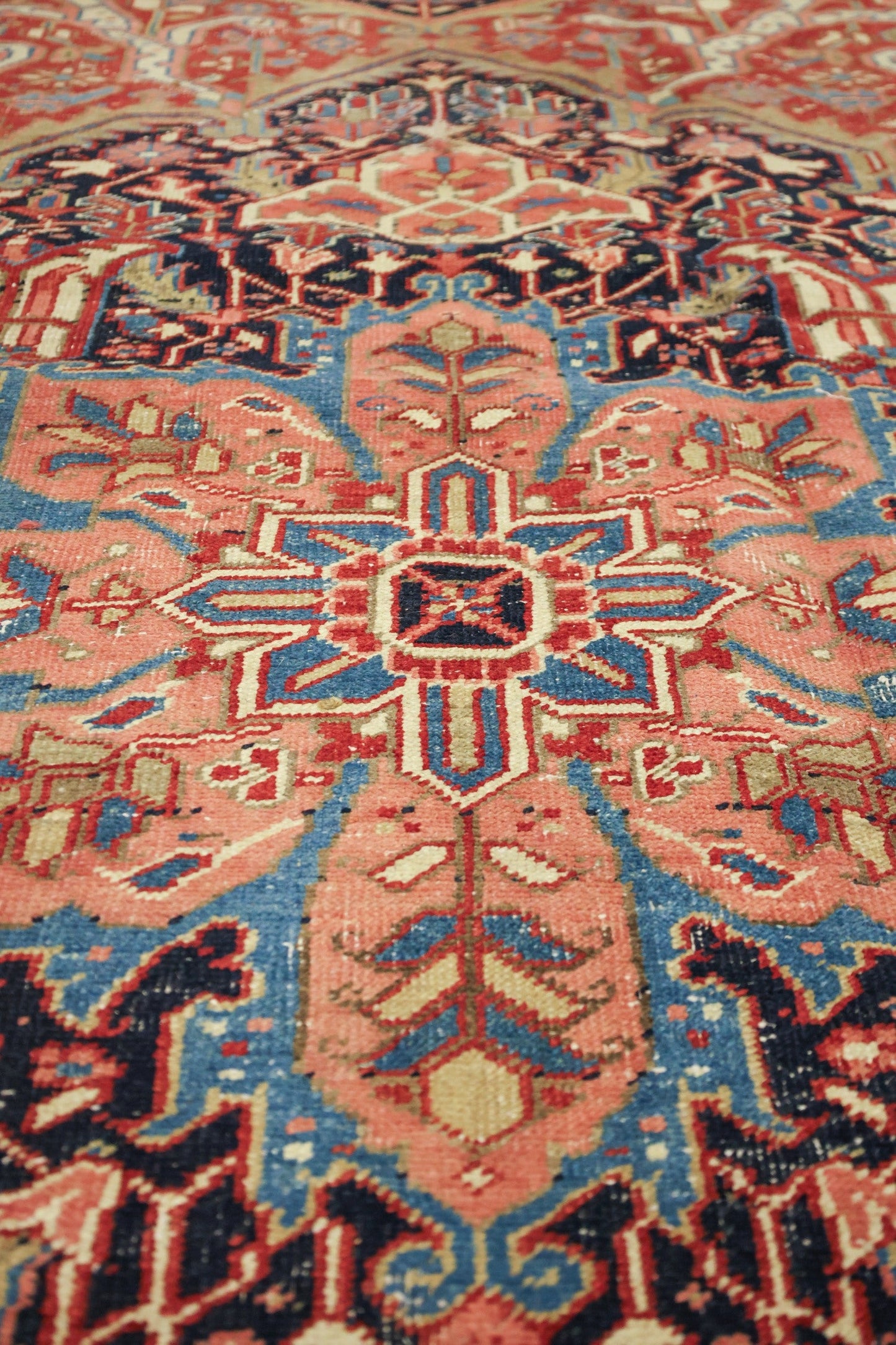 As a product of the 1920s, this rug maintains the traditional Heriz design with its distinct tribal style. Pertinently, its wool on cotton content illustrates how integral quality materials were, and continue to be, in these rugs' construction, affirming their long-lasting characteristics.