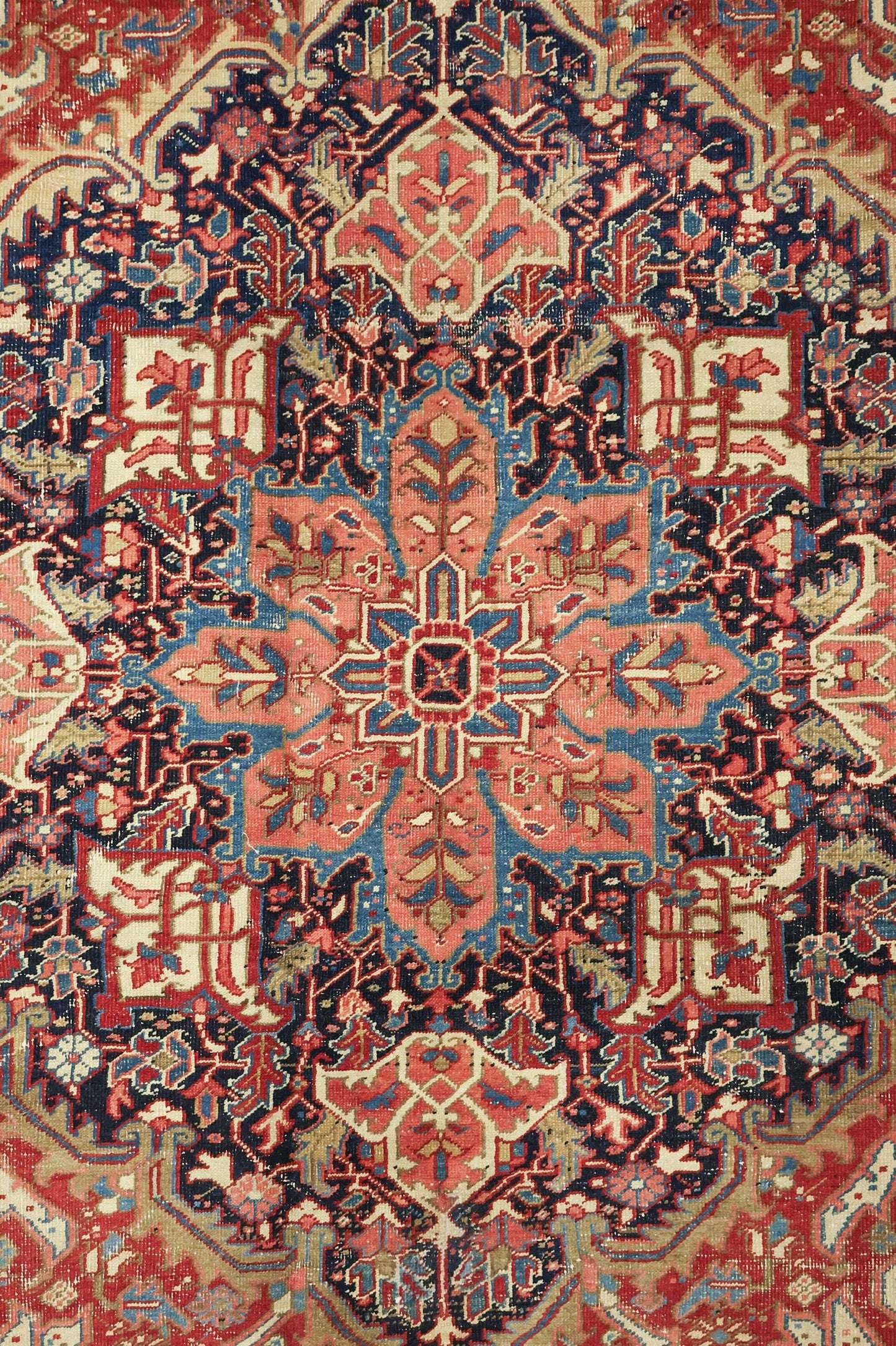 The Heriz rug design reflects a story of cultural interaction and exchange primarily owing to the influence of neighboring tribes, such as the Turks, Armenians, and the Kurds. The subsequent blend of designs has resulted in the unique angular design elements that are prominently evident in the Heriz rugs, setting them apart from other Persian rugs.