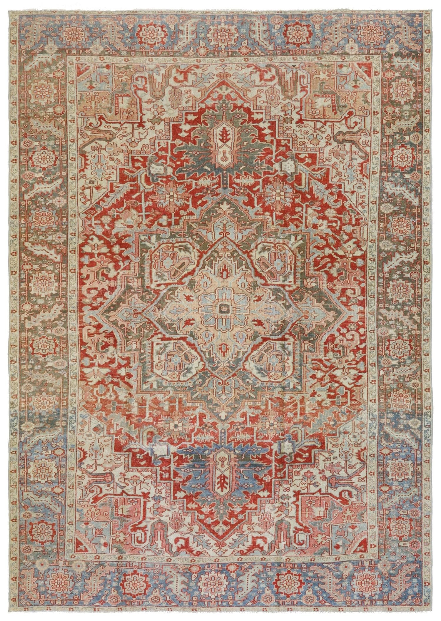 Vintage 1925 Nomadic Persian & Turkish Tribal Persian Heriz 8' 1" X 11' 5" Red Rug