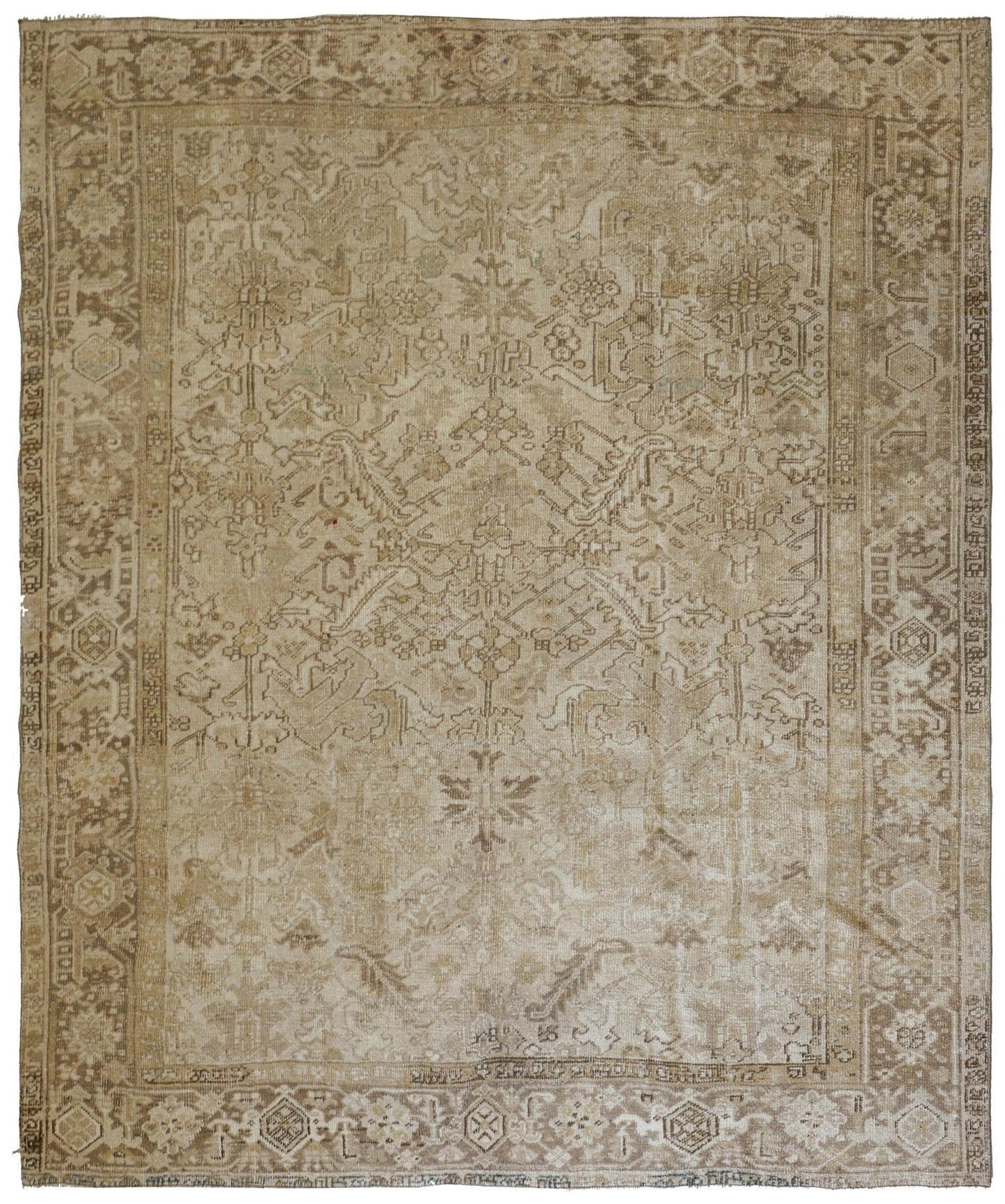 Vintage 1935 Nomadic Persian & Turkish Tribal Persian Heriz 7' 5" X 8' 3" Brown Rug