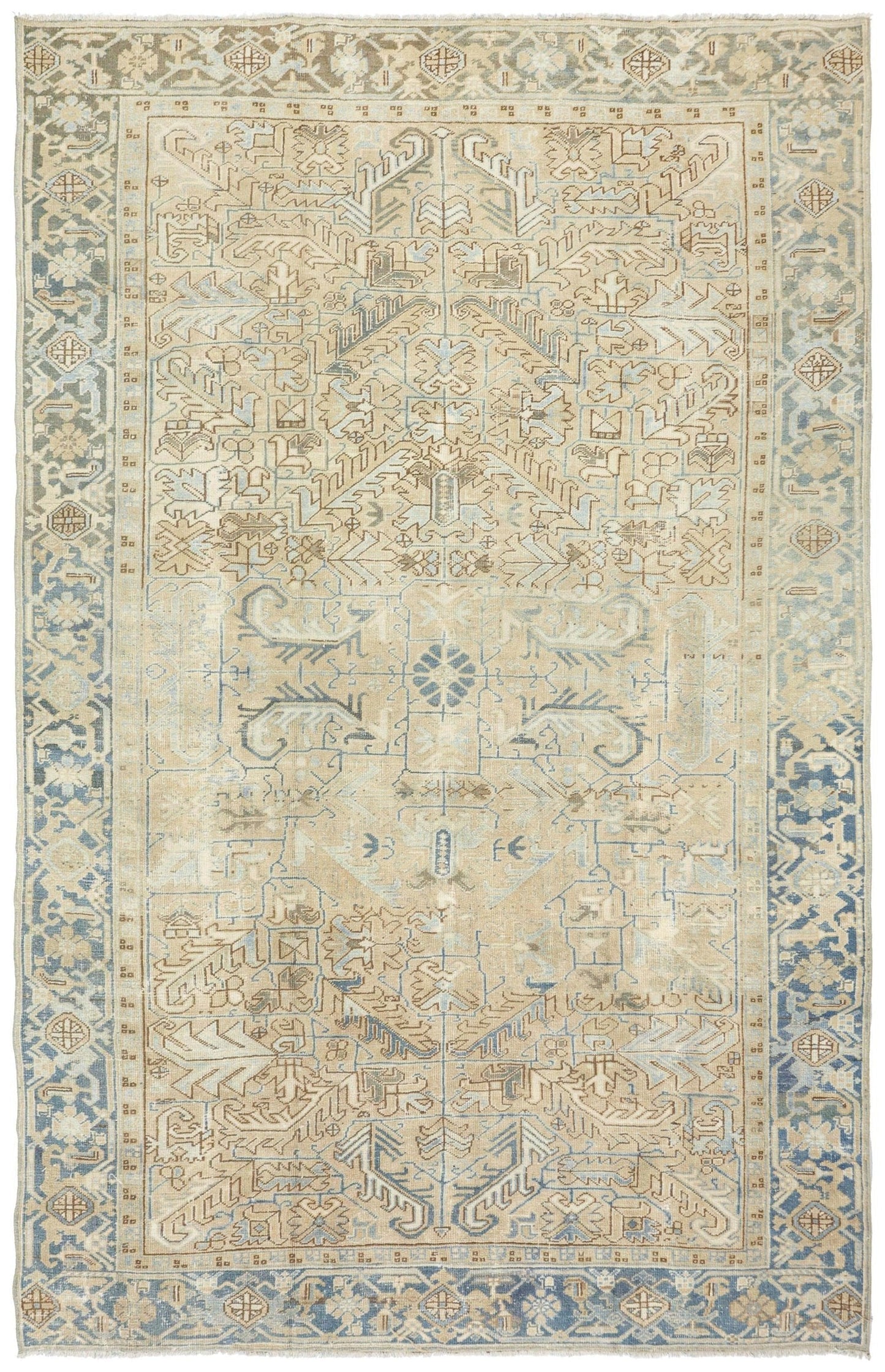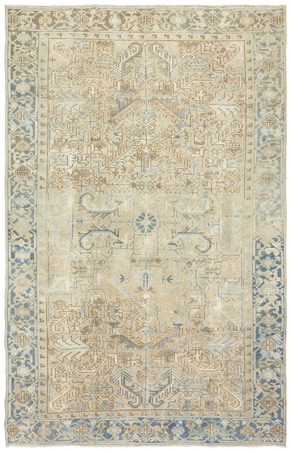 Vintage 1935 Nomadic Persian & Turkish Tribal Persian Heriz 7' 4" X 10' 7" Beige Rug