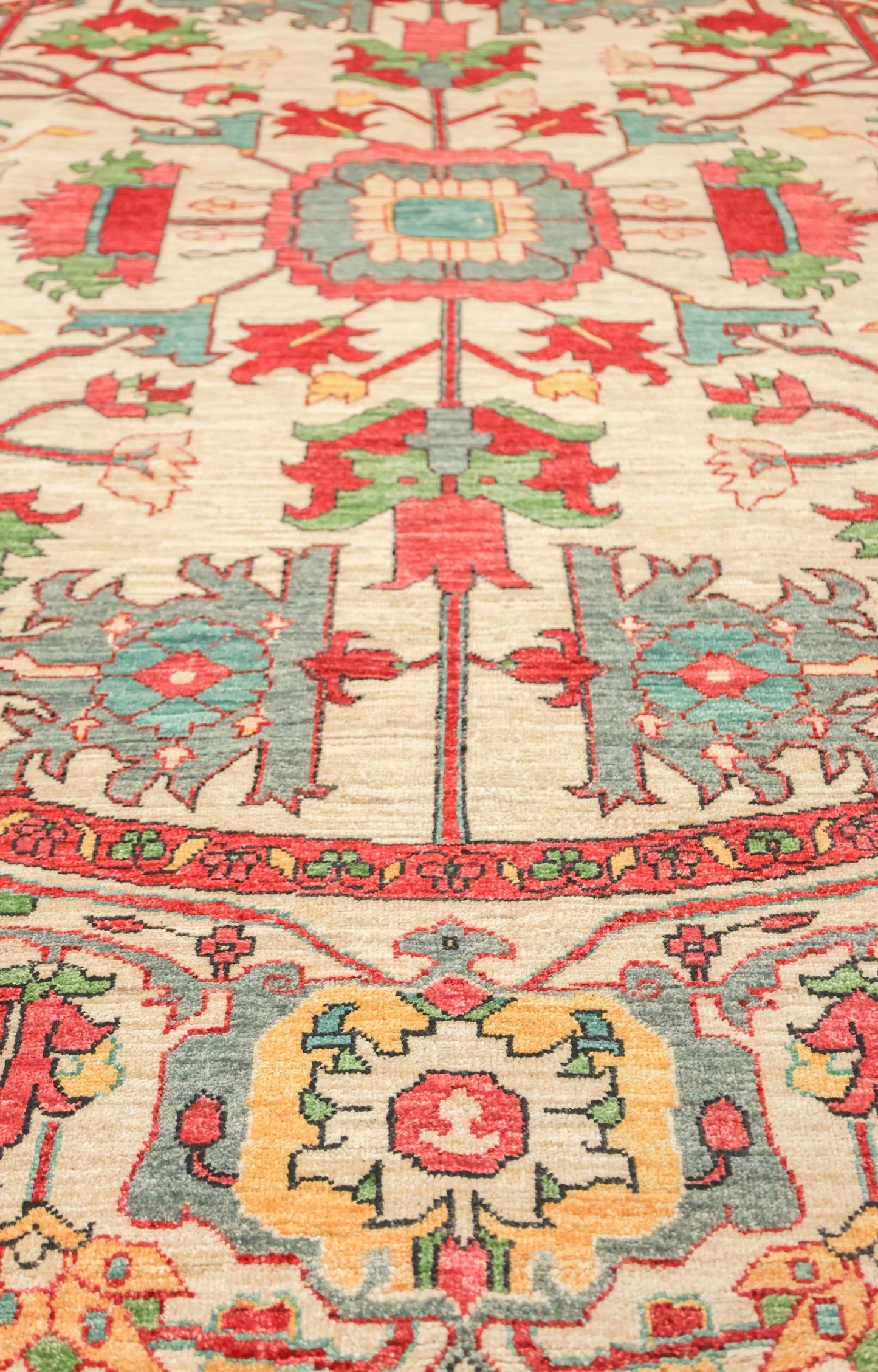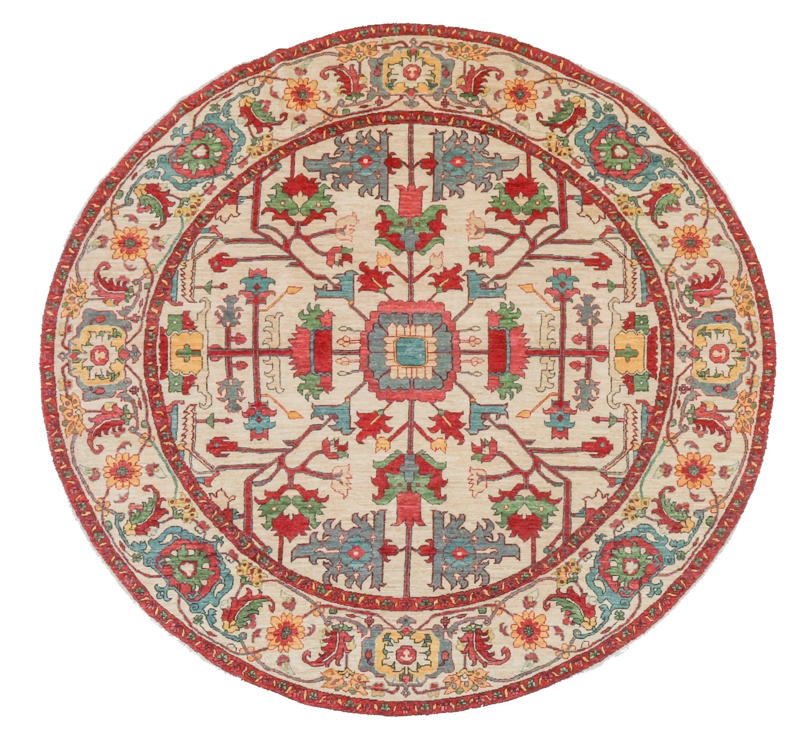 New Nomadic Persian & Turkish Tribal Afghani Heriz 9' 1" X 9' 1" Ivory Rug