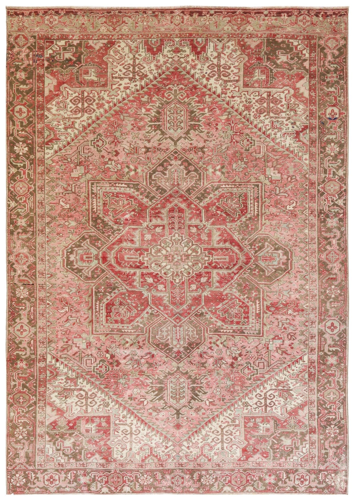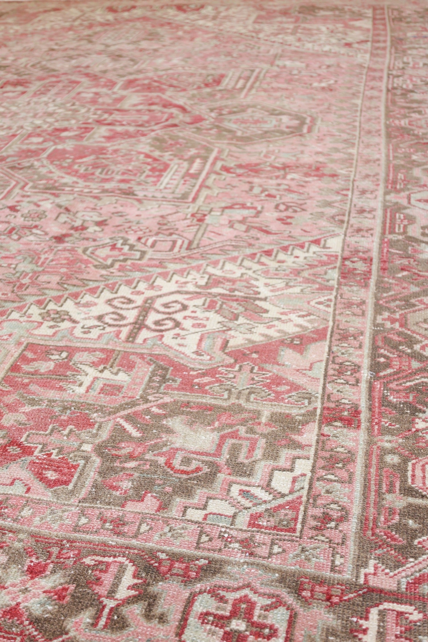 Vintage 1940 Nomadic Persian & Turkish Tribal Persian Heriz 9' 1" X 12' 7" Pink Rug