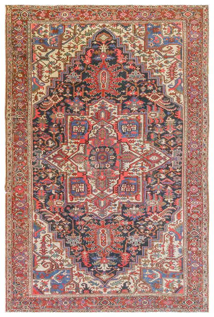Antique 1920 Nomadic Persian & Turkish Tribal Persian Heriz 9' 5" X 13' 4" Blue Rug