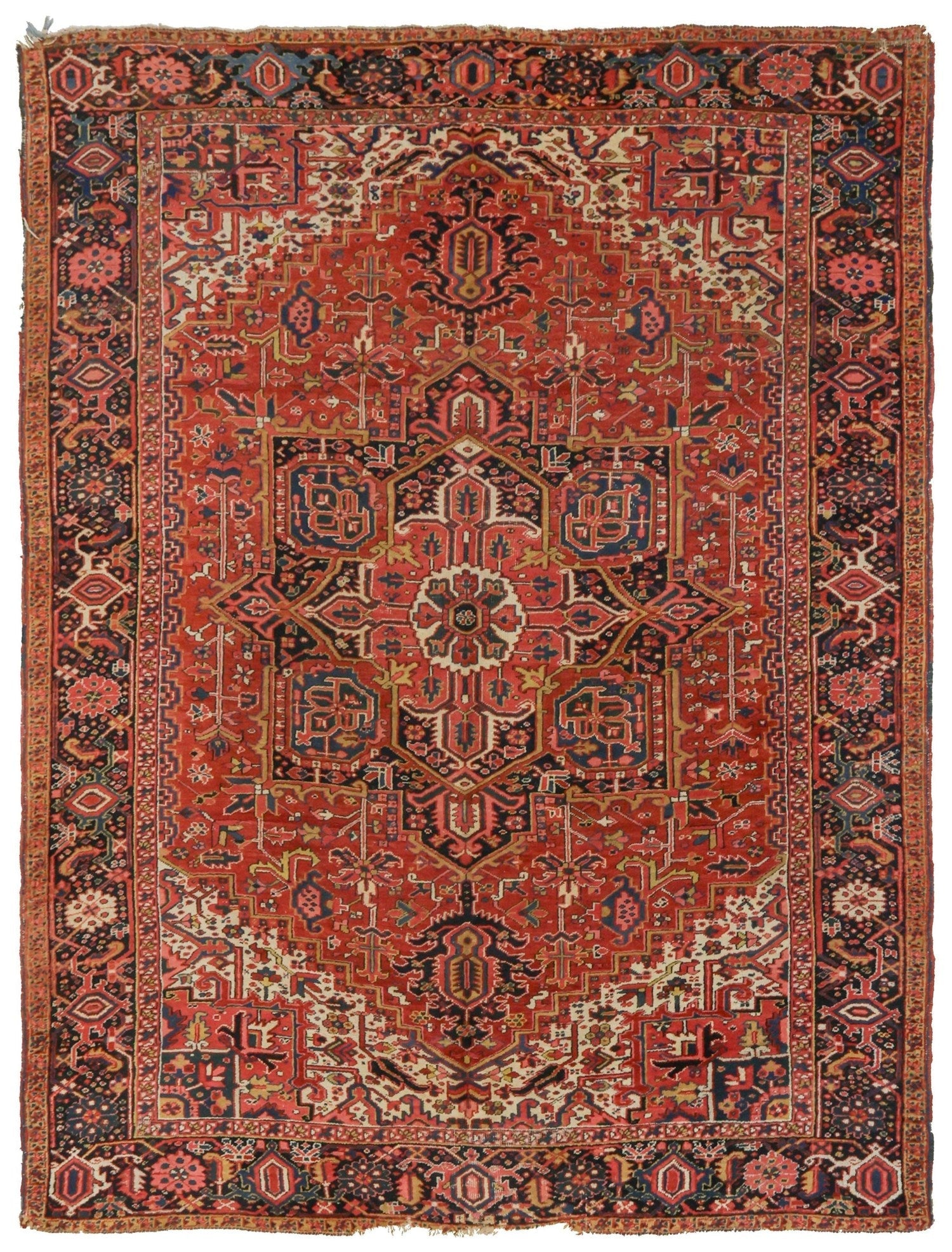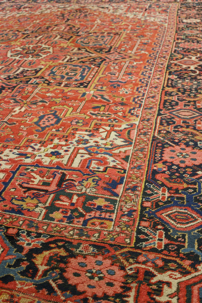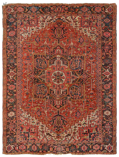 Vintage 1930 Nomadic Persian & Turkish Tribal Persian Heriz 8' 10" X 11' 8" Red Rug
