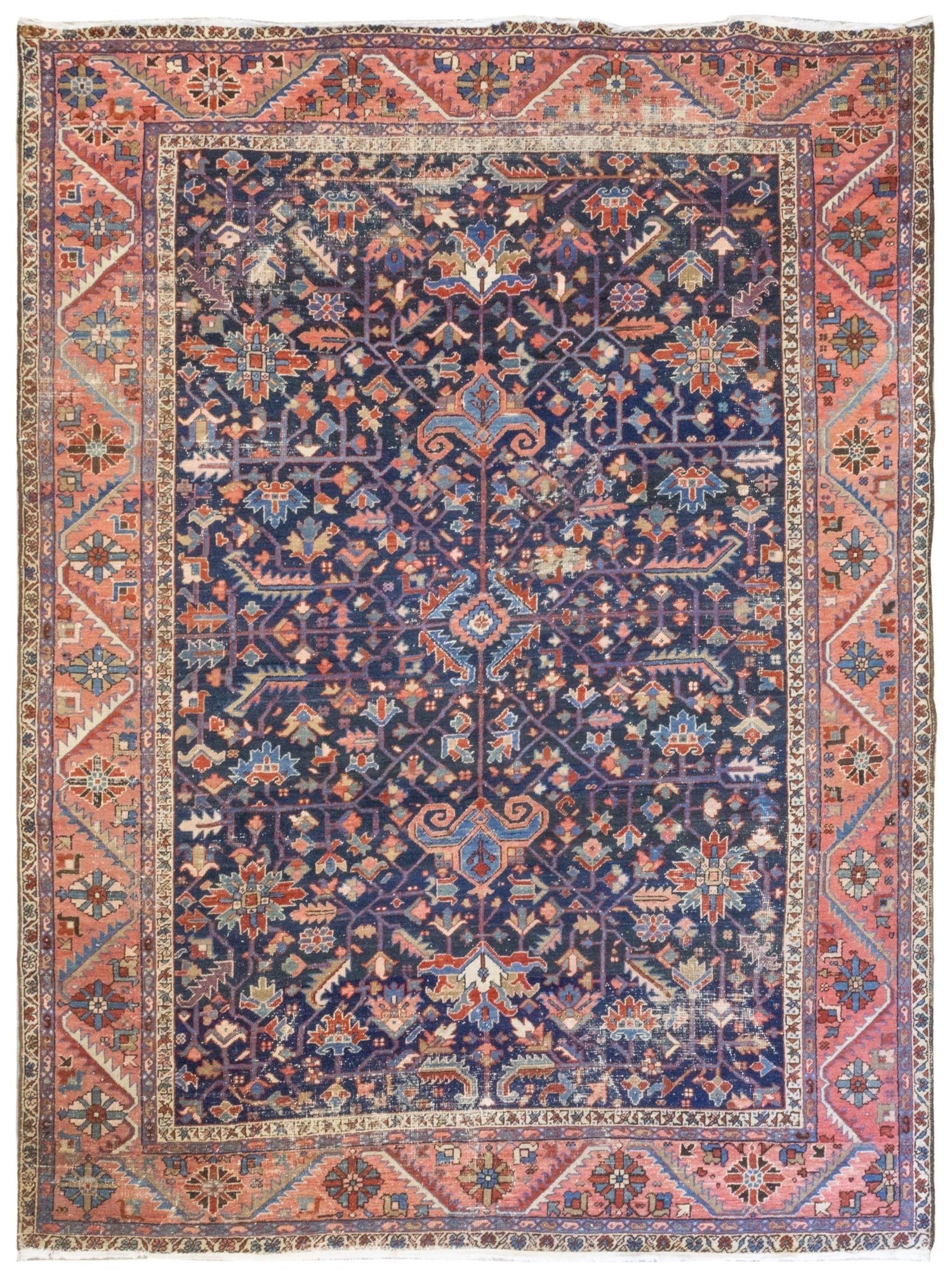 Vintage 1910 Nomadic Persian & Turkish Tribal Persian Heriz 9' 6" X 12' 3" Blue Rug