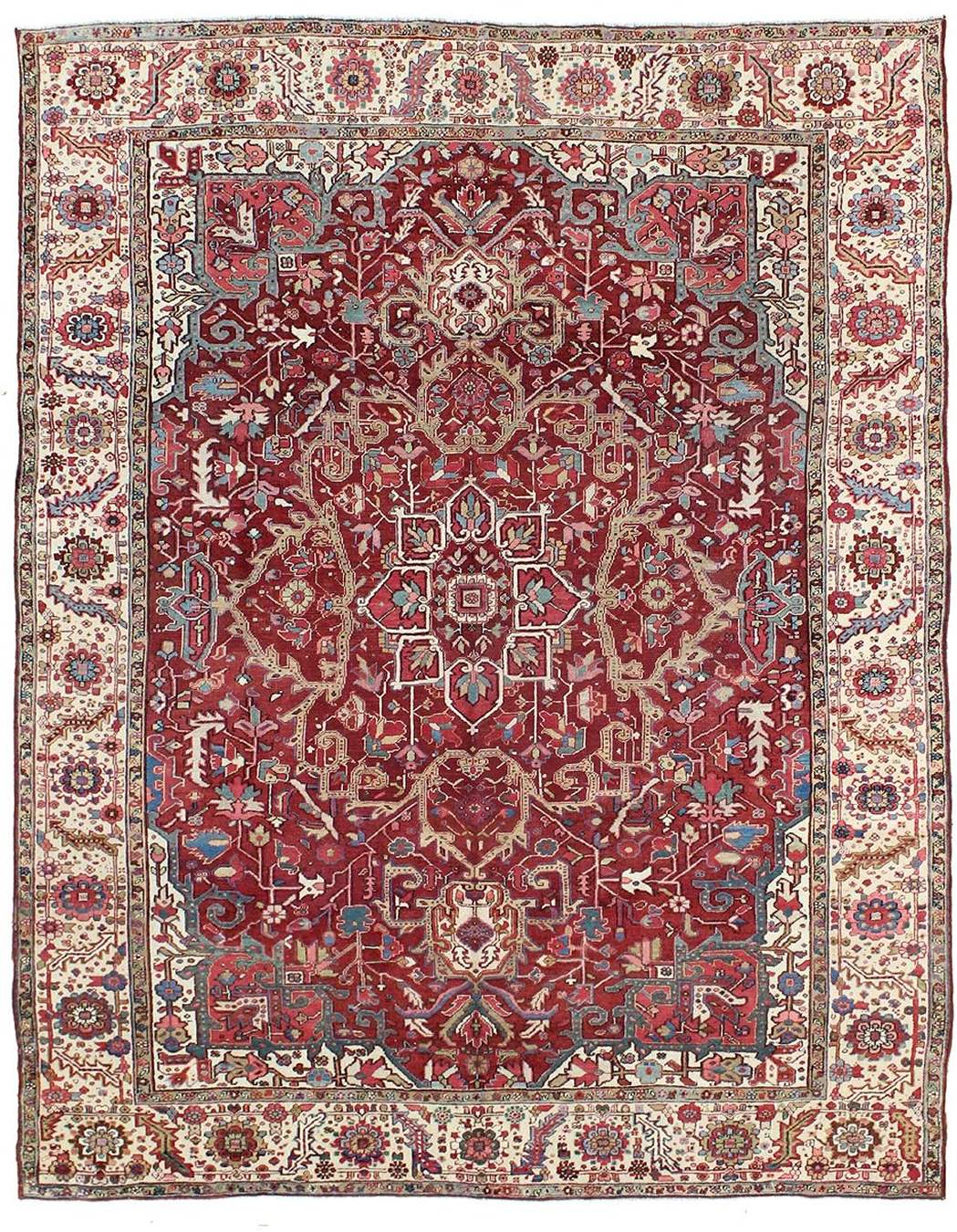 Elevate your room’s style with our Antique Heriz Handwoven Tribal Rug (JF5936). The tribal Nomadic Persian & Turkish style, with its Heriz motif, is definitely a stunner that you’ll be proud to show off in your home. Its distinctive red, rust and ivory palette will add charm, elegance, and that little bit of that ever-elusive je ne sais quoi. Plus, the wool pile on a cotton foundation used in this 9' 7" X 11' 8" rug accentuates its allure. But, this rug isn’t just worthy of gracing the pages of a design magazine. With its masterful Persian handwoven construction, this antique rug from around 1920 will be a prized possession for decades to come. Get your own show-stopping Antique Heriz Handwoven Tribal Rug today!