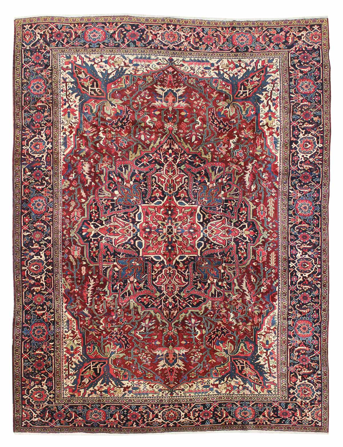 Elevate your room’s style with our Antique Heriz Handwoven Tribal Rug (JF6163). The tribal Nomadic Persian & Turkish style, with its Heriz motif, is definitely a stunner that you’ll be proud to show off in your home. Its distinctive red and navy palette will add charm, elegance, and that little bit of that ever-elusive je ne sais quoi. Plus, the wool pile on a cotton foundation used in this 9' 7" X 12' 9" rug accentuates its allure. But, this rug isn’t just worthy of gracing the pages of a design magazine. With its masterful Persian handwoven construction, this antique rug from around 1935 will be a prized possession for decades to come. Get your own show-stopping Antique Heriz Handwoven Tribal Rug today!