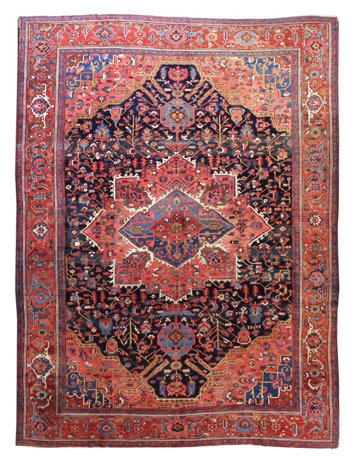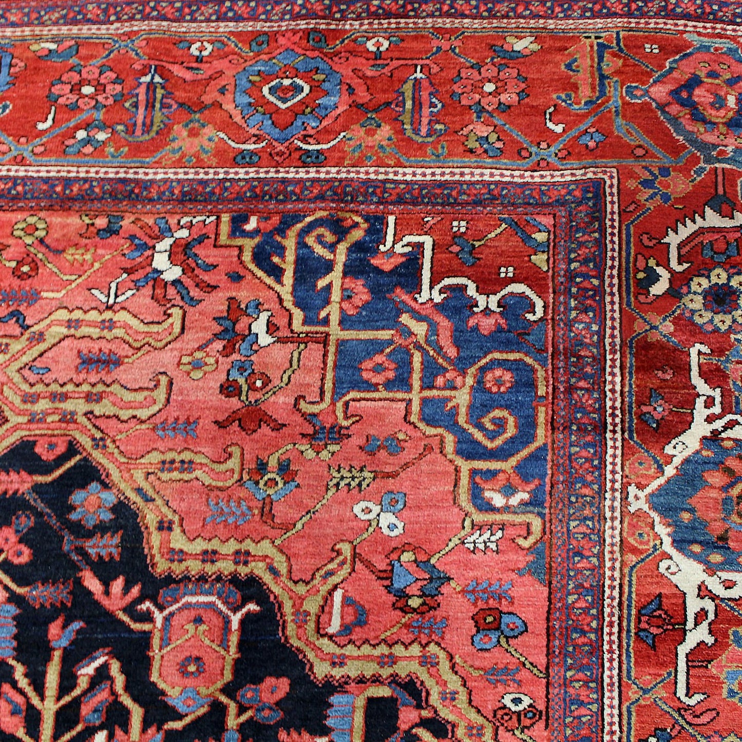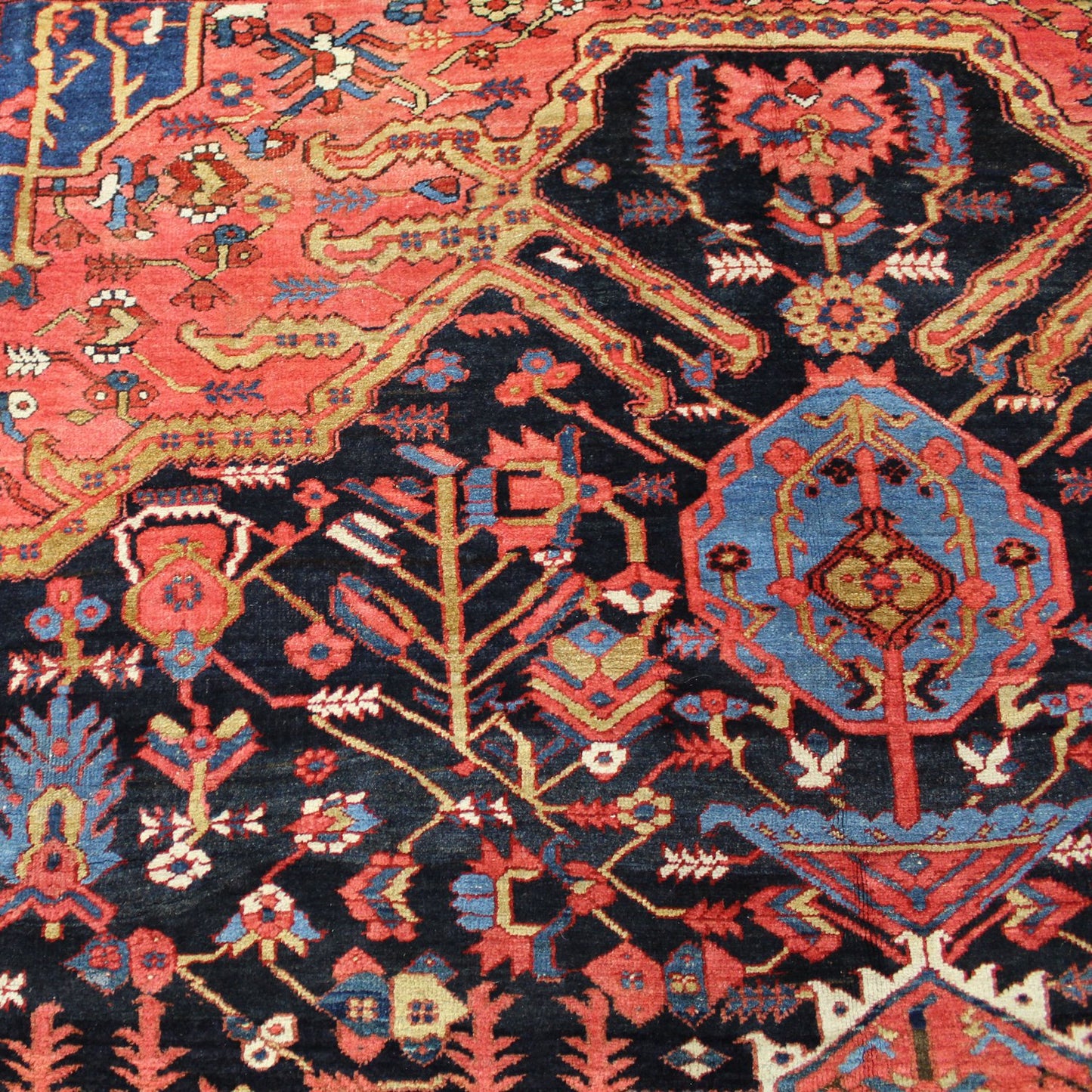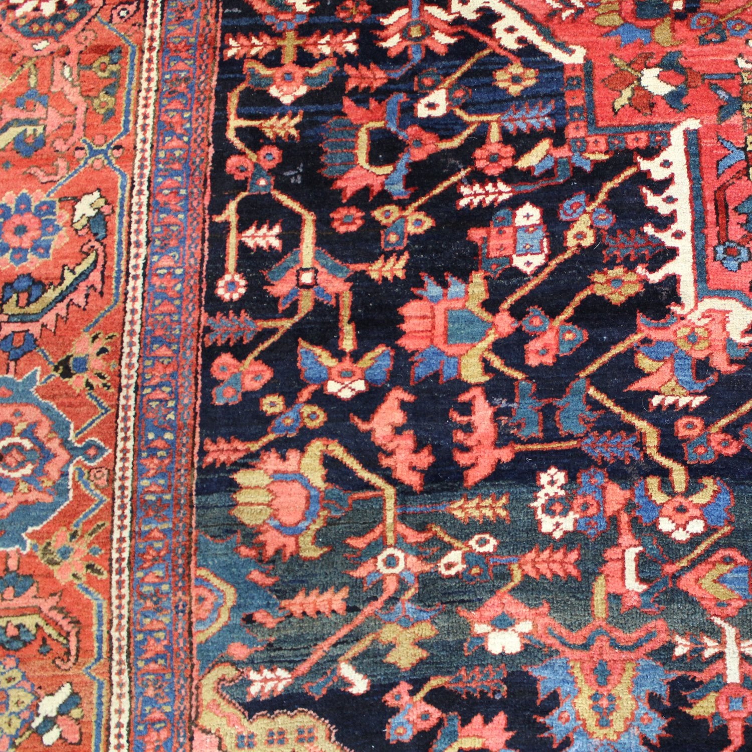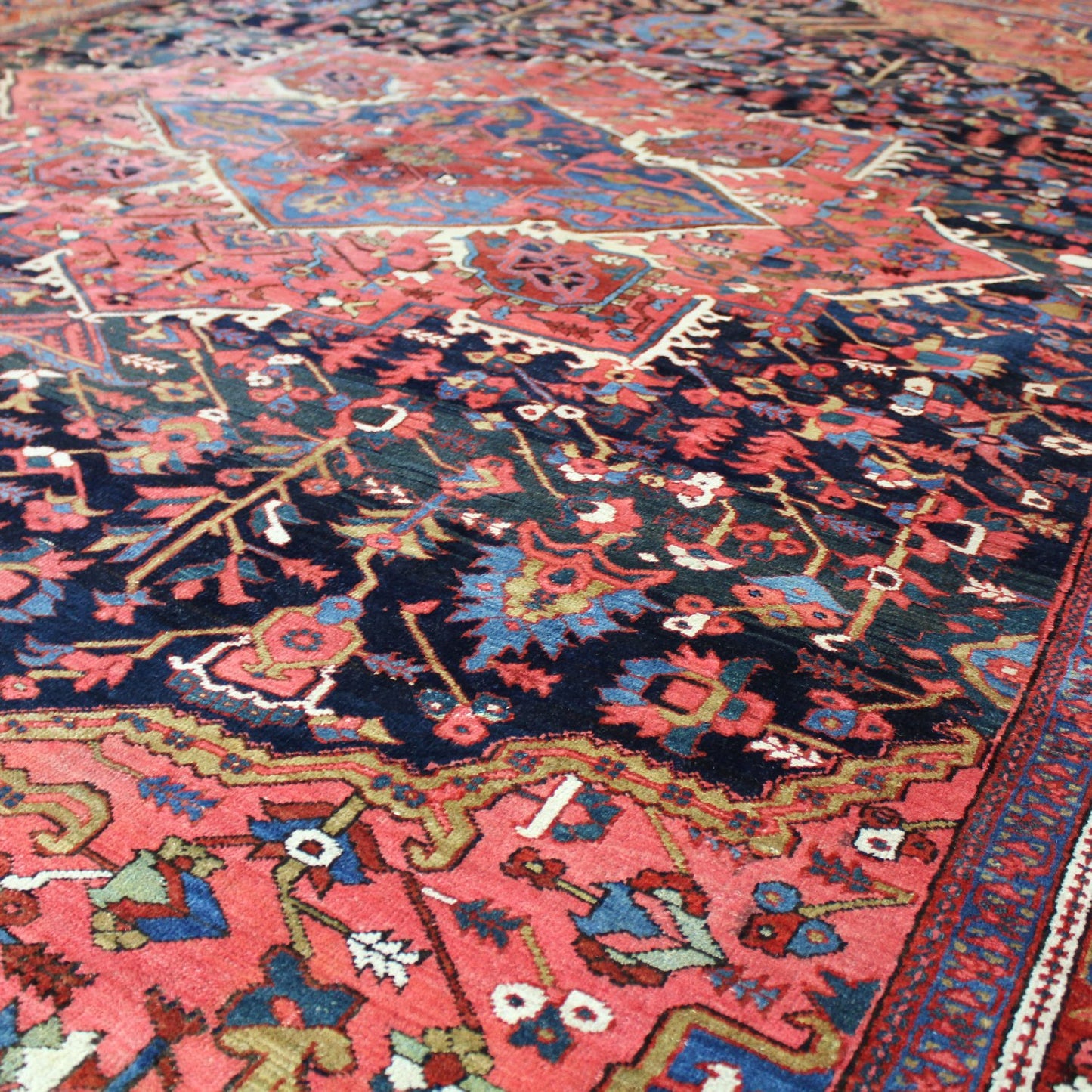 Elevate your room’s style with our Antique Heriz Handwoven Tribal Rug (JF7978). The tribal Nomadic Persian & Turkish style, with its Heriz motif, is definitely a stunner that you’ll be proud to show off in your home. Its distinctive blue, navy and rust palette will add charm, elegance, and that little bit of that ever-elusive je ne sais quoi. Plus, the wool pile on a cotton foundation used in this 9' 6" X 13' 0" rug accentuates its allure. But, this rug isn’t just worthy of gracing the pages of a design magazine. With its masterful Persian handwoven construction, this antique rug from around 1920 will be a prized possession for decades to come. Get your own show-stopping Antique Heriz Handwoven Tribal Rug today!