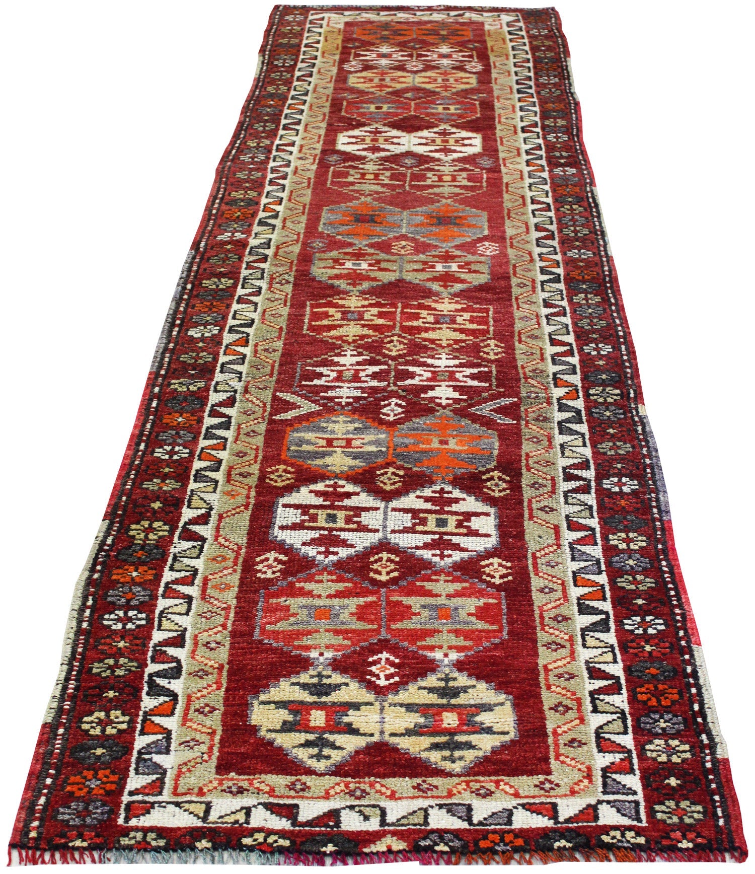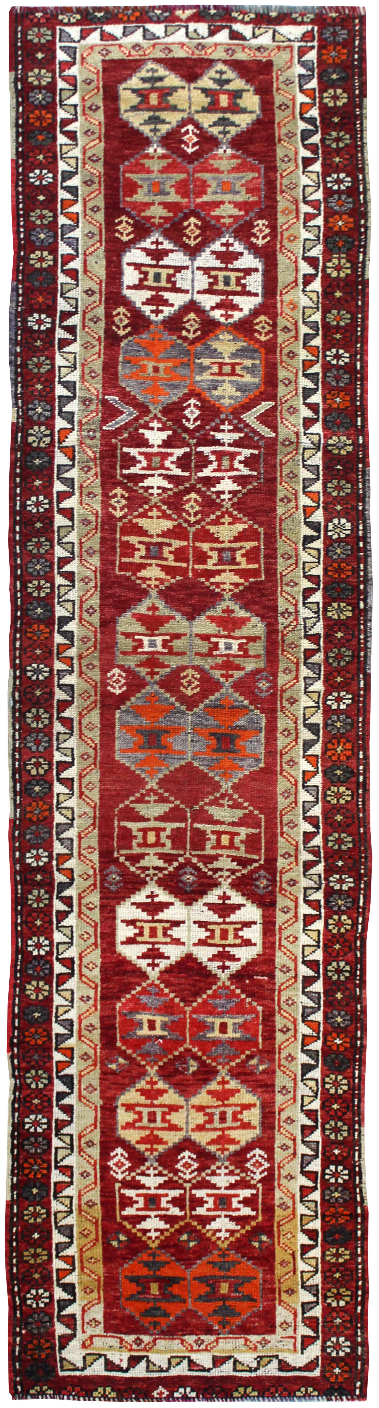 Show off your exquisite taste with our beautiful Vintage Herki Handwoven Tribal Rug (J64579). It’s a prime example of a tribal Vintage Turkish Village done right and will add a unique, polished look to your space. Crafted mainly in red and complemented with raspberry and green, the Herki design really pops. The wool & acrylic pile surface is resilient yet comfortable and the cotton foundation provides a sturdy base. This 2' 11" X 11' 1" handwoven rug is of vintage construction (circa 1960) and Turkish origin. All in all, you’re going to love this piece and it’s going to be the perfect addition to your home. Make it happen today — with your own Vintage Herki Handwoven Tribal Rug.
