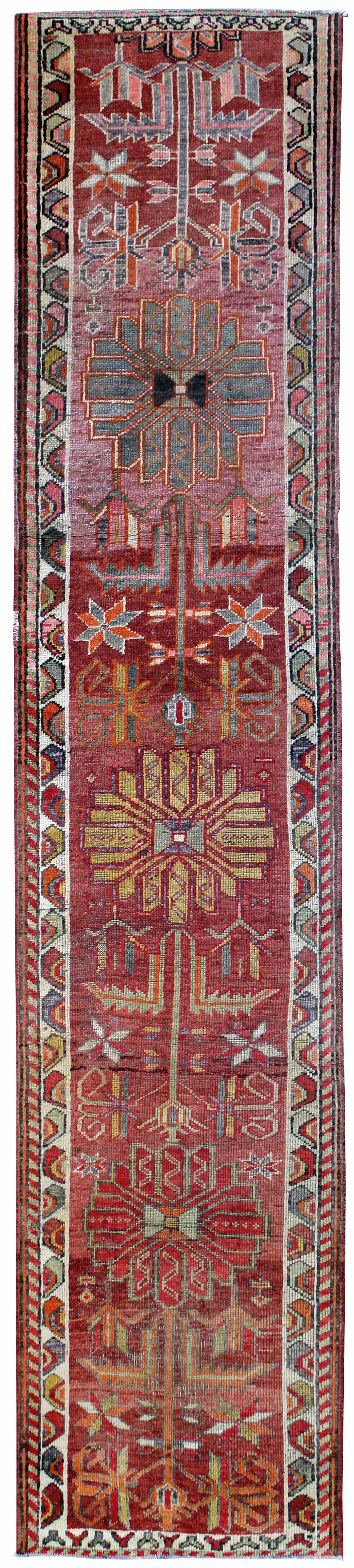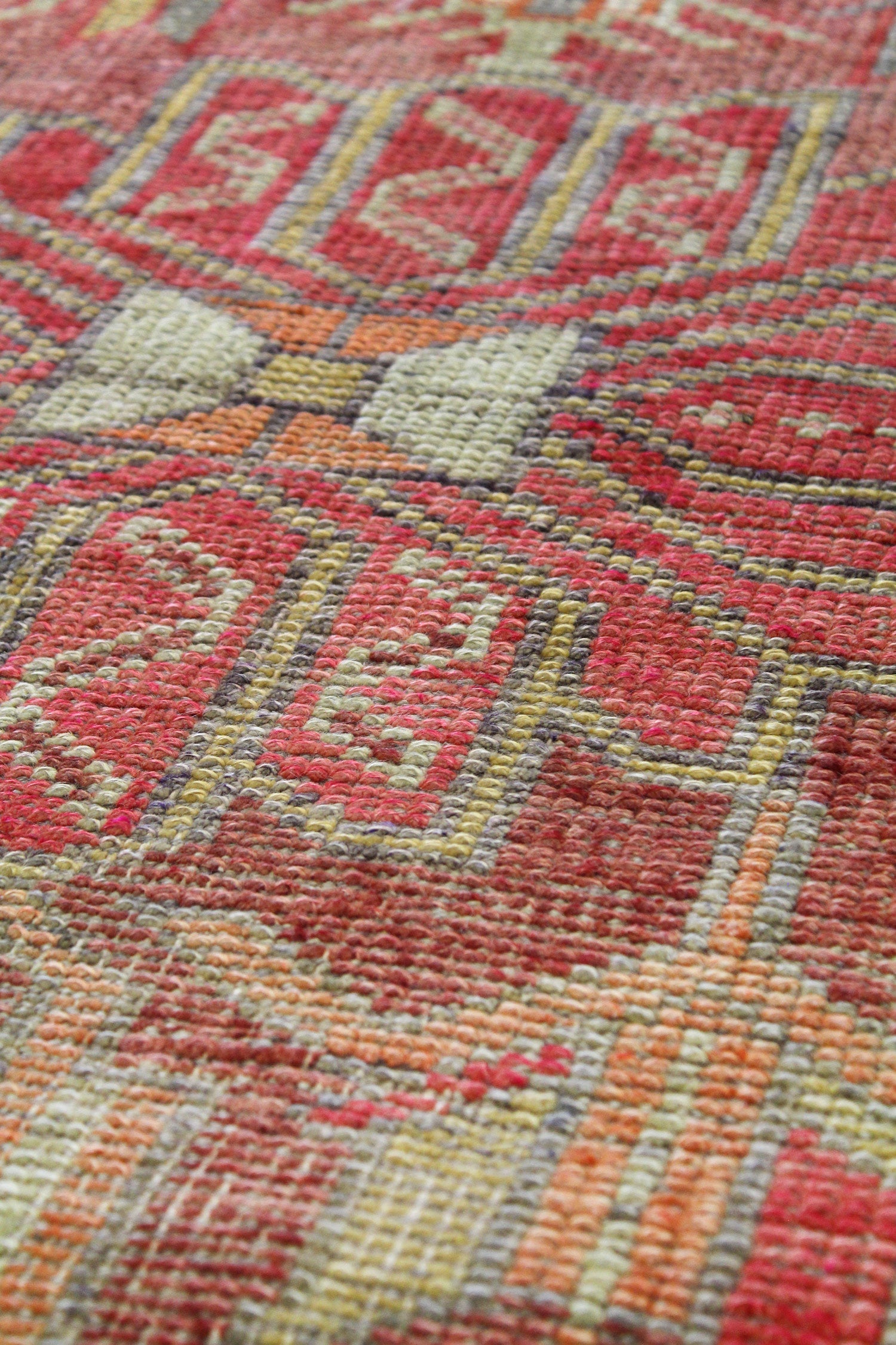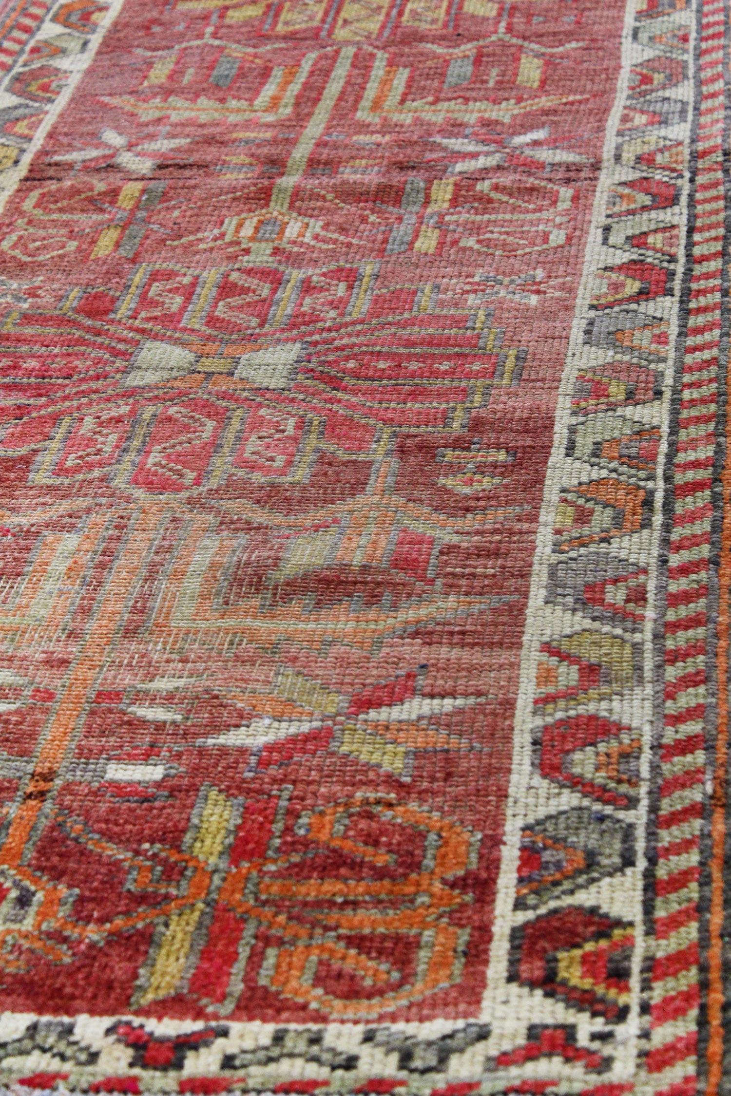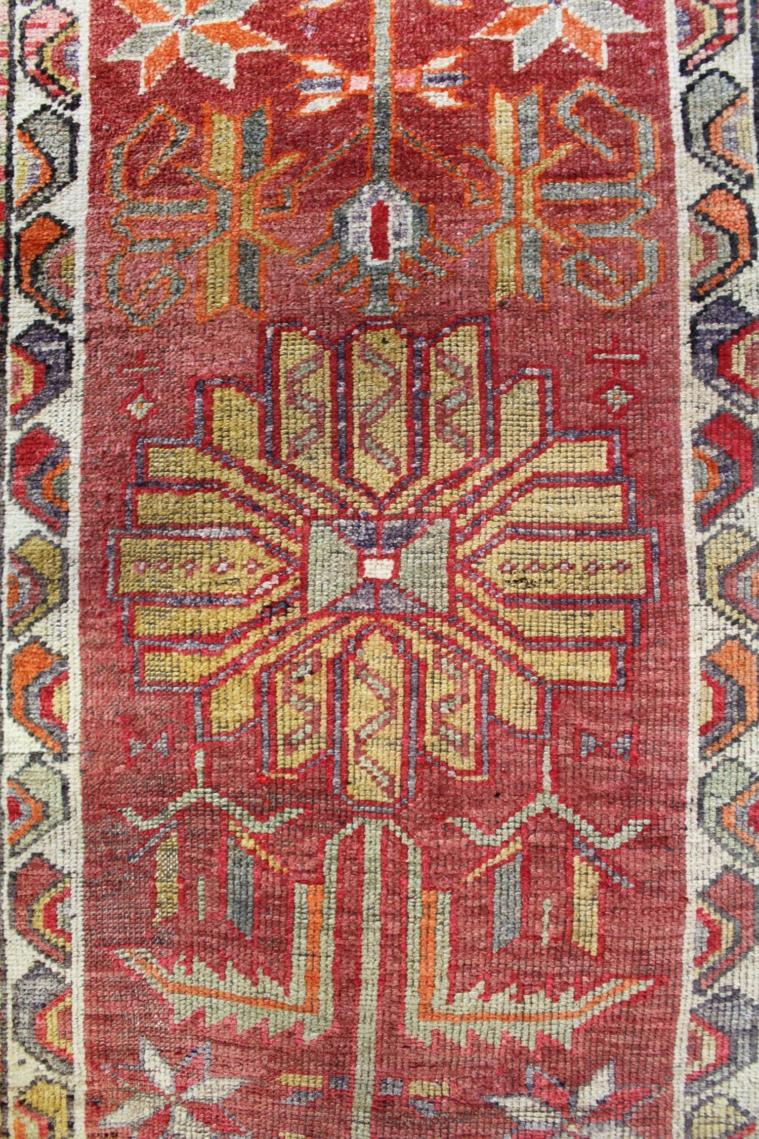 Show off your exquisite taste with our beautiful Vintage Herki Handwoven Tribal Rug (J64625). It’s a prime example of a tribal Vintage Turkish Village done right and will add a unique, polished look to your space. Crafted mainly in red and complemented with rhubarb and yellow, the Herki design really pops. The wool pile surface is resilient yet comfortable and the cotton foundation provides a sturdy base. This 2' 10" X 12' 10" handwoven rug is of vintage construction (circa 1960) and Turkish origin. All in all, you’re going to love this piece and it’s going to be the perfect addition to your home. Make it happen today — with your own Vintage Herki Handwoven Tribal Rug.