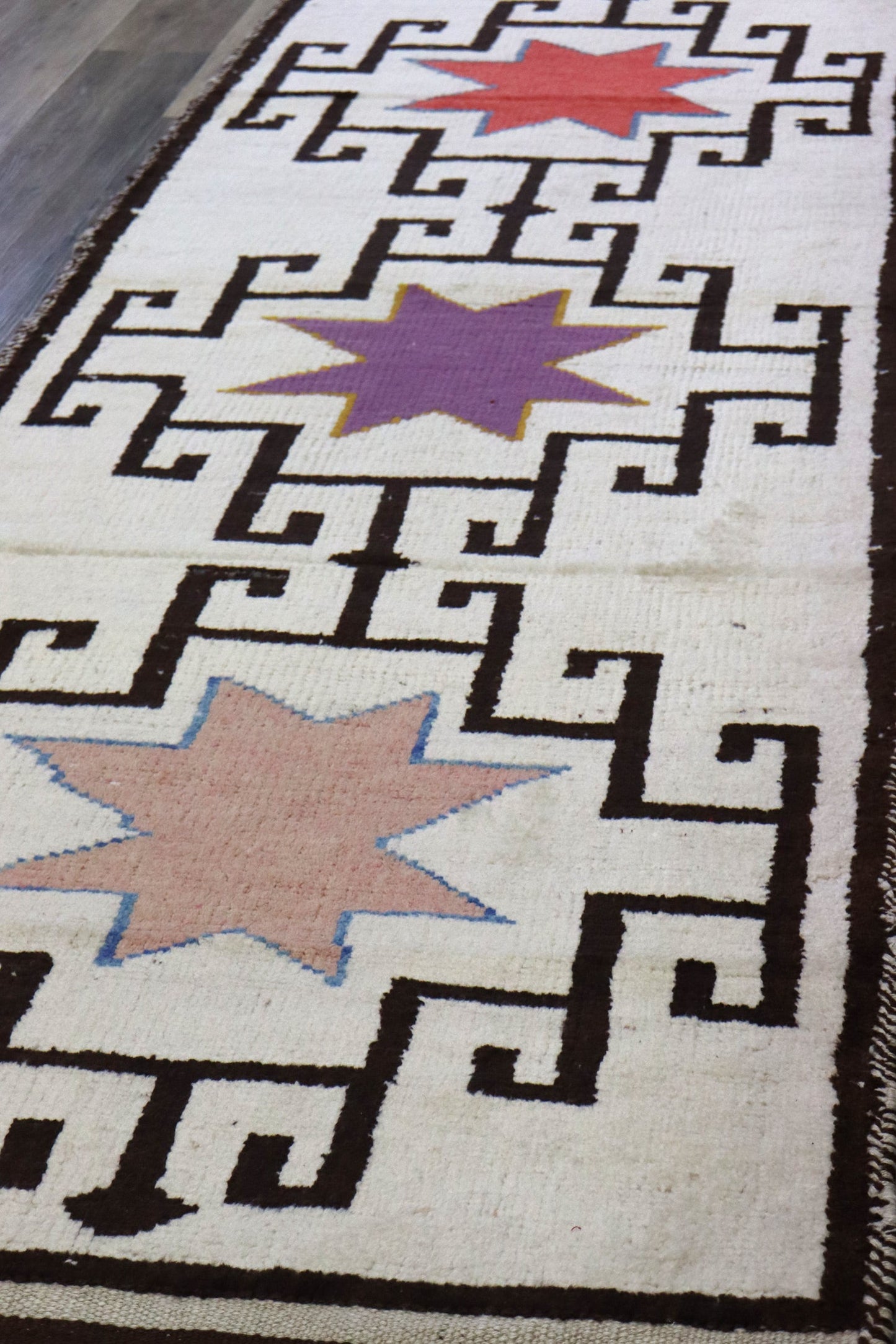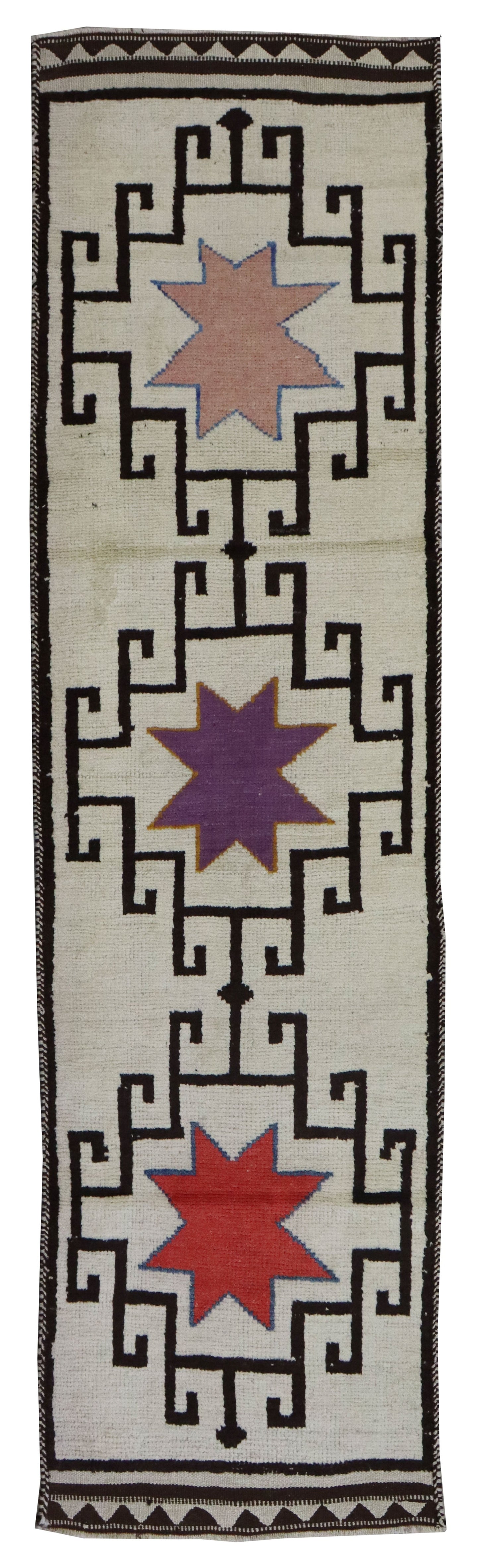 Change things up — transform your space with our amazing Vintage Herki Handwoven Tribal Rug (J66575). This vintage 3' 8" X 11' 8" rug is in the tribal Vintage Turkish Village style and features a stunning Herki design that you’ll absolutely love. This rug is primarily ivory with purple accents. You’ll also appreciate the wool pile on a wool foundation, which feels great underfoot! As with other handwoven Turkish rugs, this one’s made to last. You’ll be enjoying the elements of interest and sophistication it adds to your home for years. Don’t delay — refresh your room today with your own Vintage Herki Handwoven Tribal Rug.