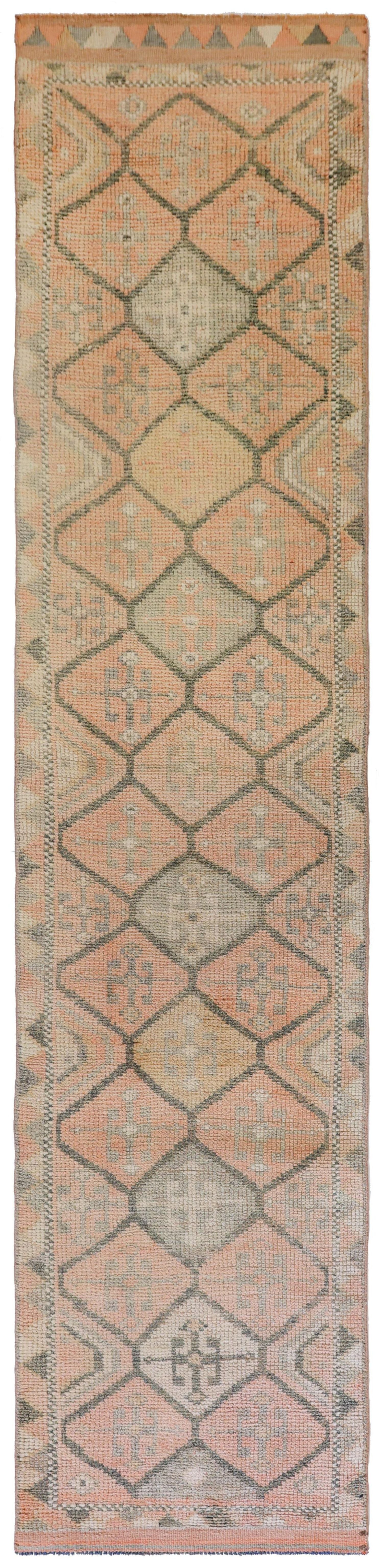 Vintage 1970 Vintage Turkish Village Tribal Turkish Herki 2' 10" X 12' 4" Orange Rug
