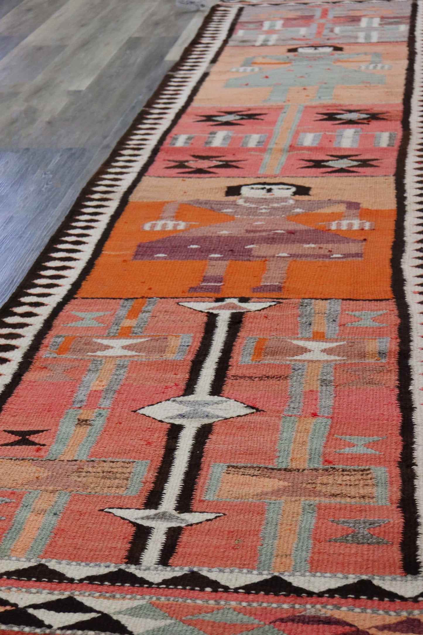 Change things up — transform your space with our amazing Vintage Herki Kilim Handwoven Tribal Rug (J66570). This vintage 2' 9" X 12' 5" rug is in the tribal Vintage Turkish Village style and features a stunning Herki Kilim design that you’ll absolutely love. This rug is primarily watermelon with orange accents. You’ll also appreciate the wool flatweave on a wool foundation, which feels great underfoot! As with other handwoven Turkish rugs, this one’s made to last. You’ll be enjoying the elements of interest and sophistication it adds to your home for years. Don’t delay — refresh your room today with your own Vintage Herki Kilim Handwoven Tribal Rug.