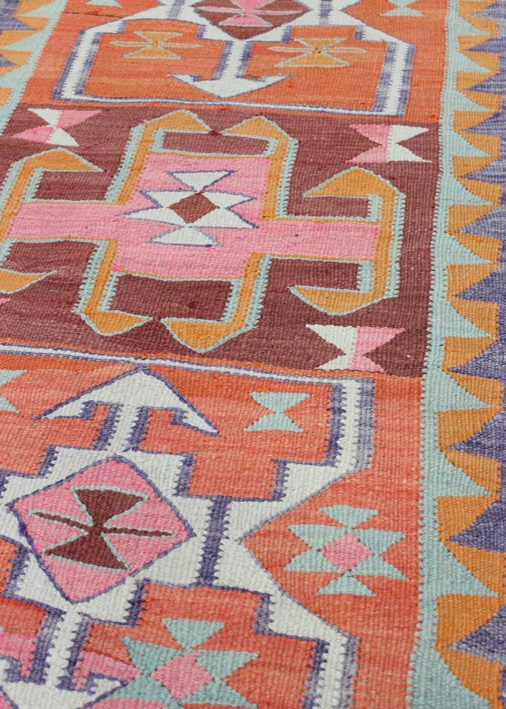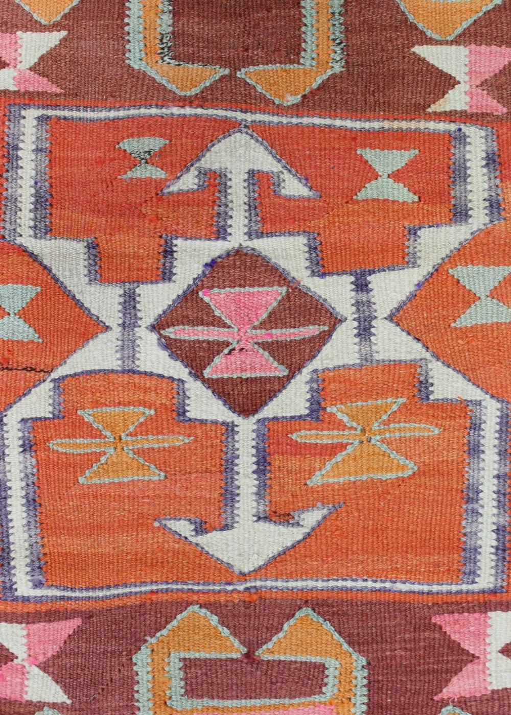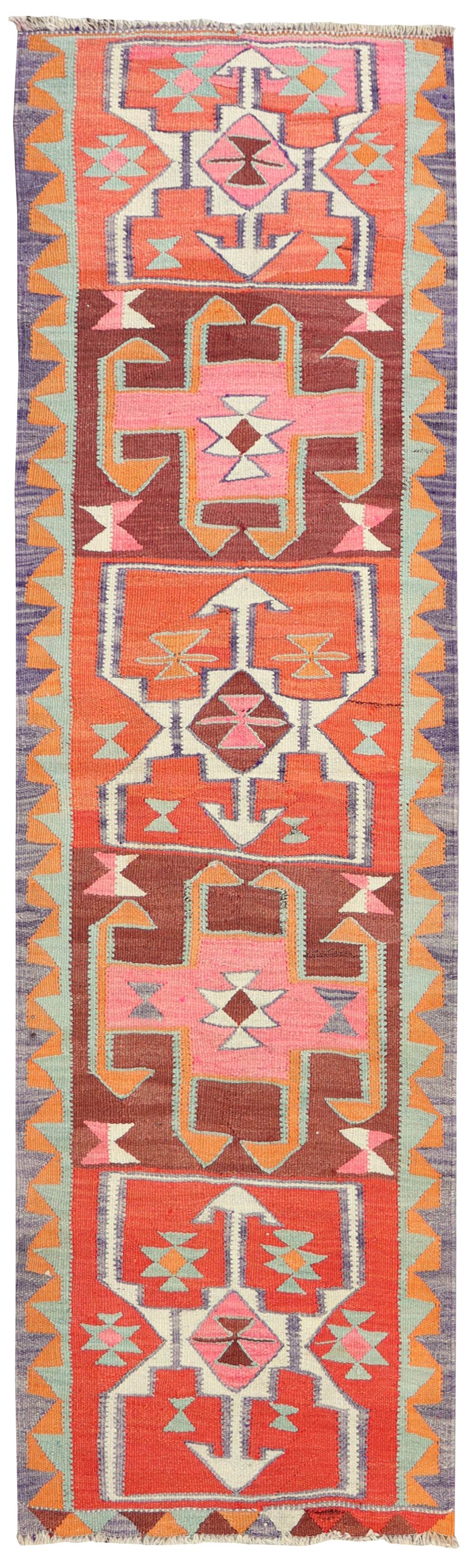 Change things up — transform your space with our amazing Vintage Herki Kilim Handwoven Tribal Rug (J67112). This vintage 3' 2" X 10' 7" rug is in the tribal Kilim style and features a stunning Herki Kilim design that you’ll absolutely love. This rug is primarily orange on persimmon with mint accents. You’ll also appreciate the wool flatweave on a wool foundation, which feels great underfoot! As with other handwoven Turkish rugs dating to around 1945, this one’s made to last. You’ll be enjoying the elements of interest and sophistication it adds to your home for years. Don’t delay — refresh your room today with your own Vintage Herki Kilim Handwoven Tribal Rug.