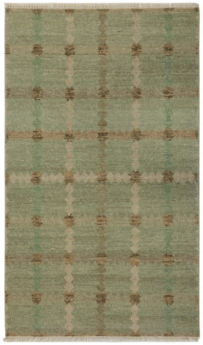 New Overdyed & Distressed Transitional Indian Hooked 3' 0" X 5' 0" Green Rug