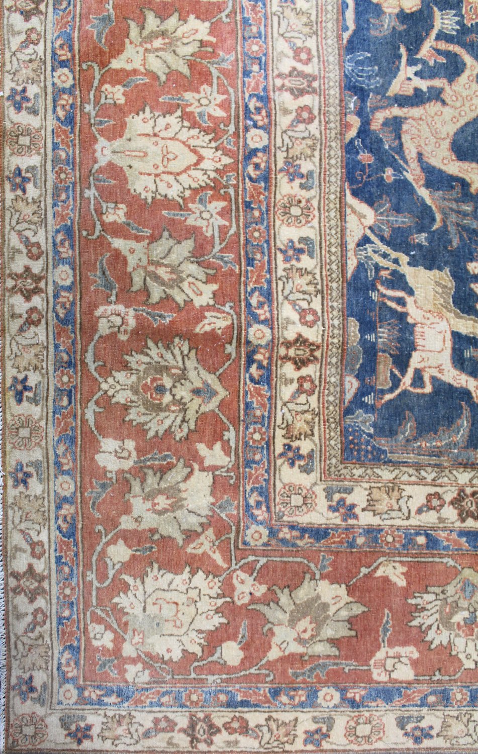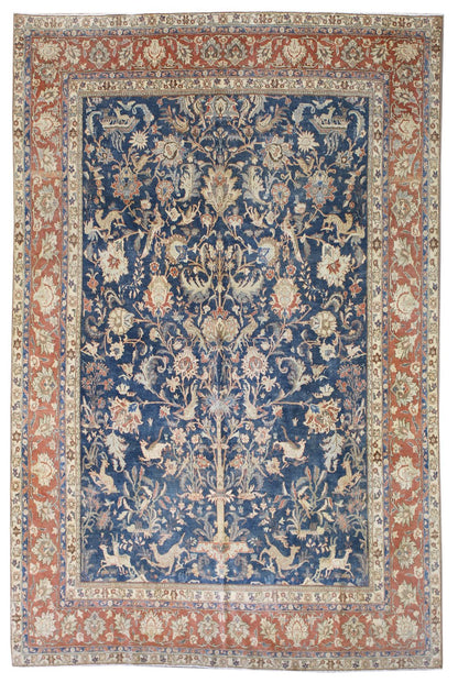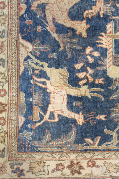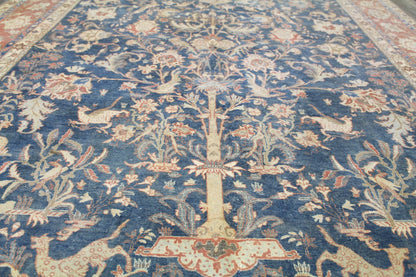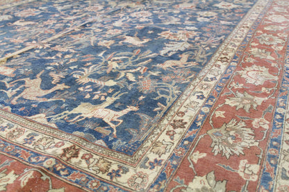Vintage 1930 Nomadic Persian & Turkish Tribal Persian Hunting Isphahan 6' 11" X 10' 9" Blue Rug