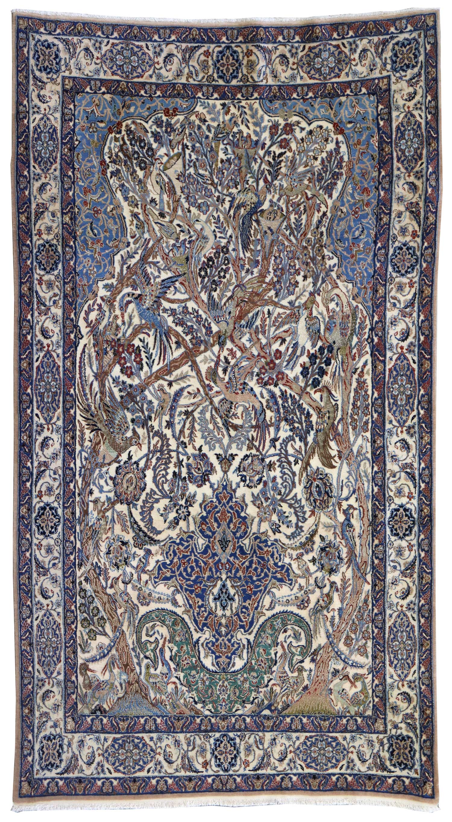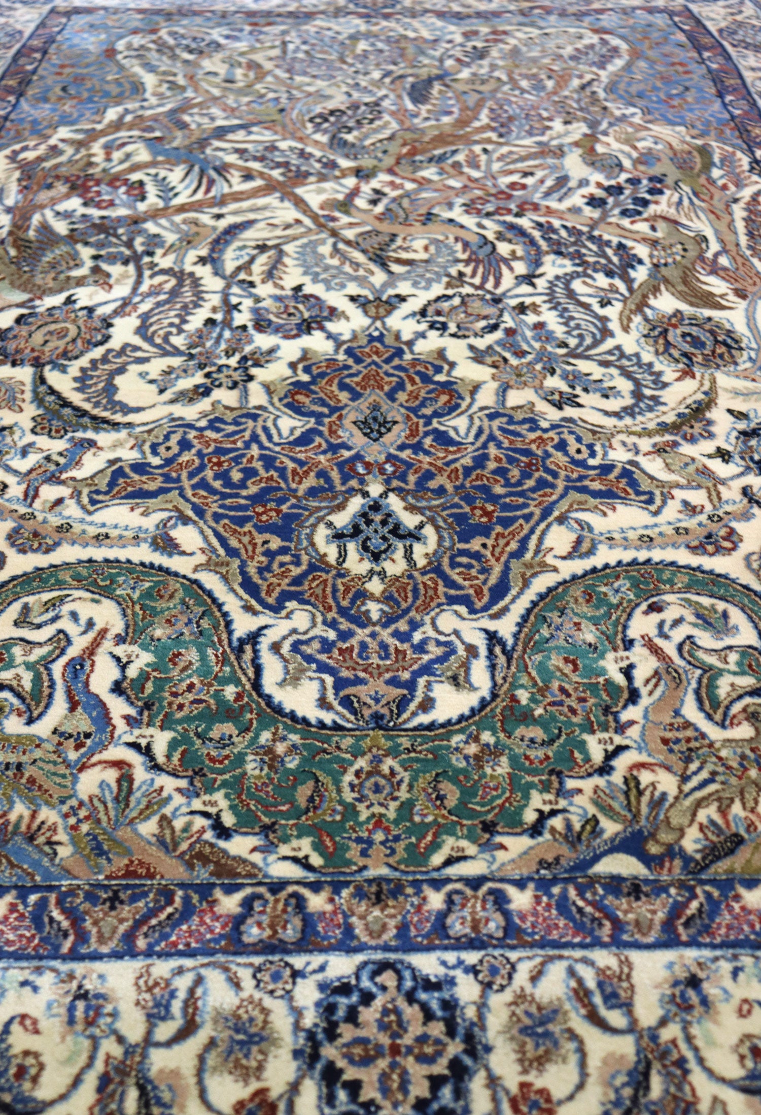 Vintage Formal Classic Persian Traditional Persian Isfahan 4' 4" X 7' 9" Ivory Rug