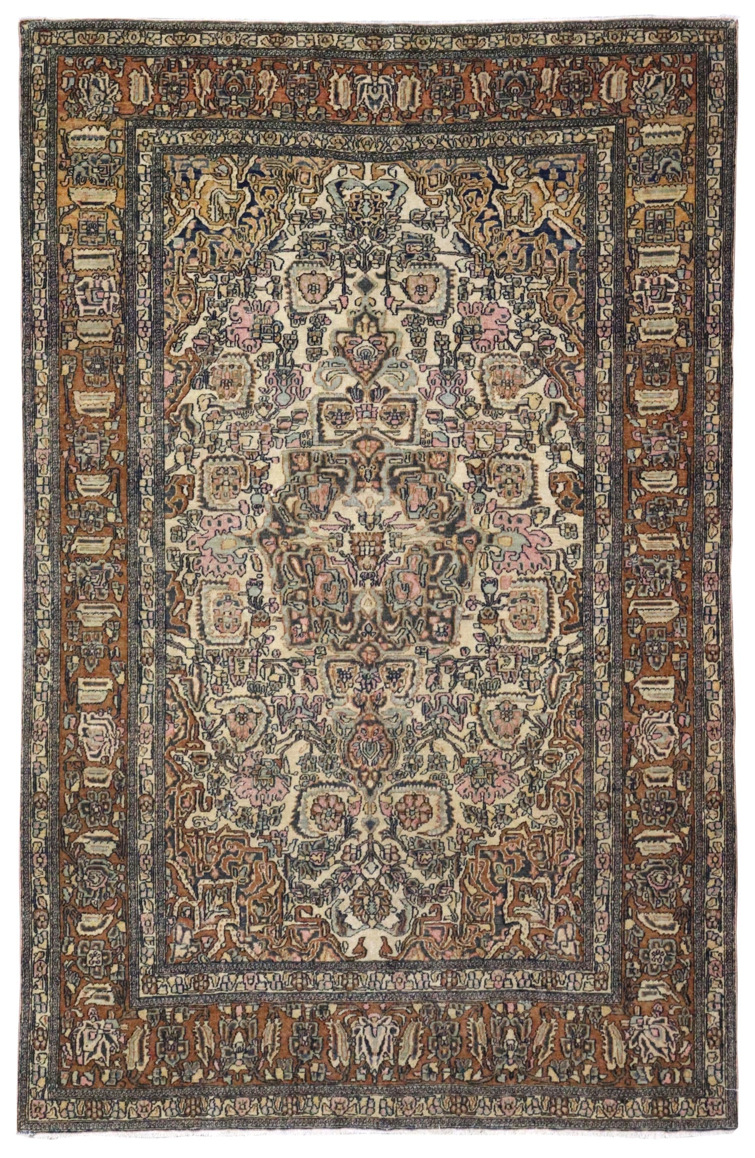 Change things up — transform your space with our amazing Antique Isphahan Handwoven Traditional Rug (J65769). This antique 4' 6" X 6' 11" rug is in the traditional Formal Classic Persian style and features a stunning Isphahan design that you’ll absolutely love. This rug is primarily ivory with mustard accents. You’ll also appreciate the wool pile on a cotton foundation, which feels great underfoot! As with other handwoven Persian rugs dating to around 1900, this one’s made to last. You’ll be enjoying the elements of interest and sophistication it adds to your home for years. Don’t delay — refresh your room today with your own Antique Isphahan Handwoven Traditional Rug.