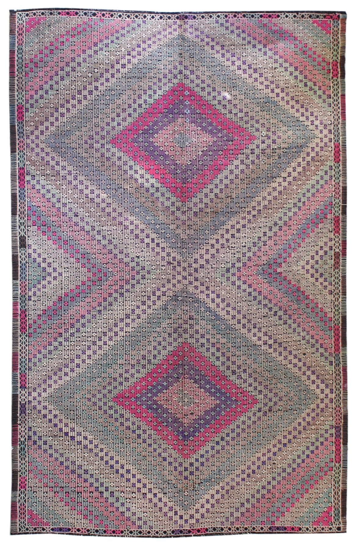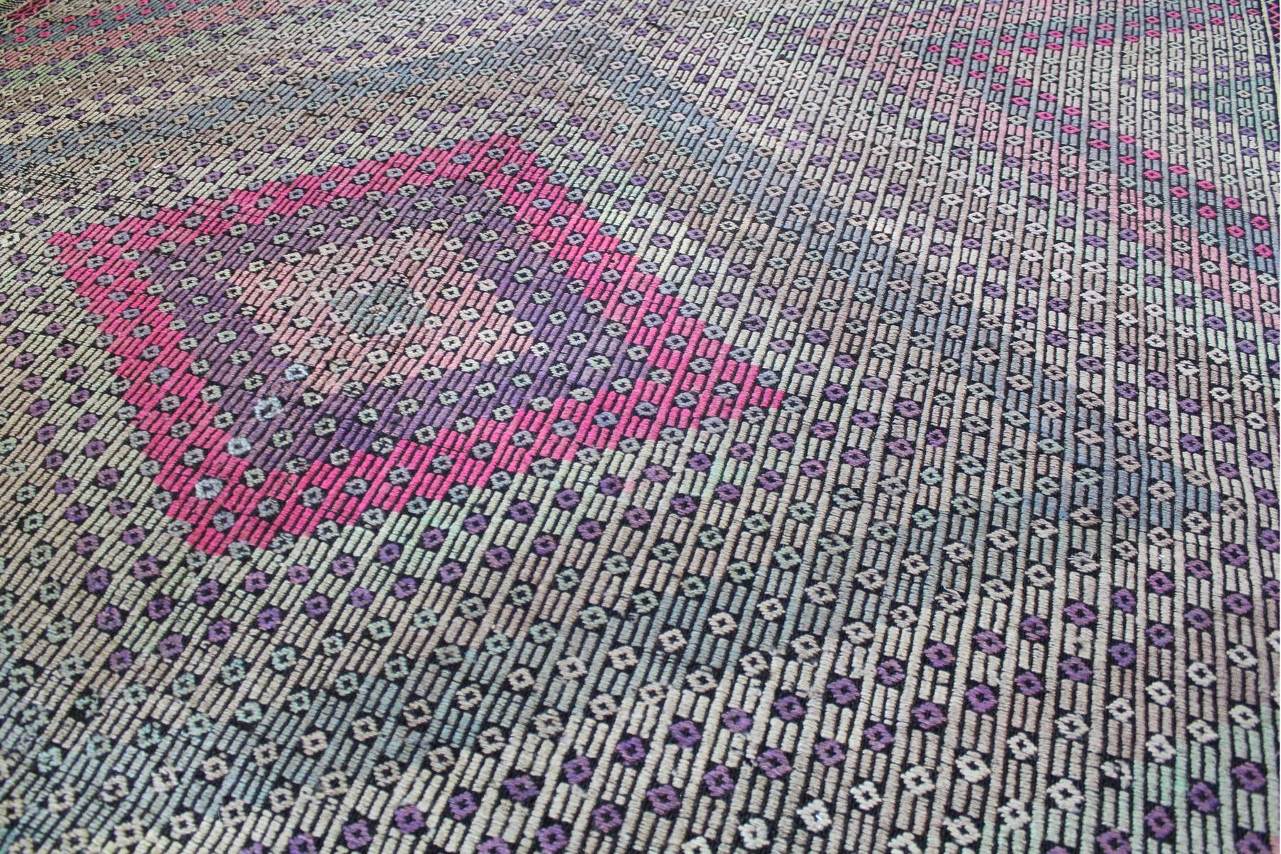 Opt for opulence and establish your signature style with the striking Vintage Jijim Handwoven Tribal Rug (J56428). As a 6' 3" X 9' 6" rug that's tribal and kilim in style, you know that this piece can instantly tie the look of your space together. The rug's jijim design will effortlessly complement and elevate your home's interior. Better still, the pink, beige and fuchsia will flatter any décor. This vintage handwoven Turkish rug from around 1960 is constructed of wool flatweave and a woolfoundation, so it’ll not only look outstanding and perfect in your home — it’ll last for generations. Bring home your Vintage Jijim Handwoven Tribal Rug today!