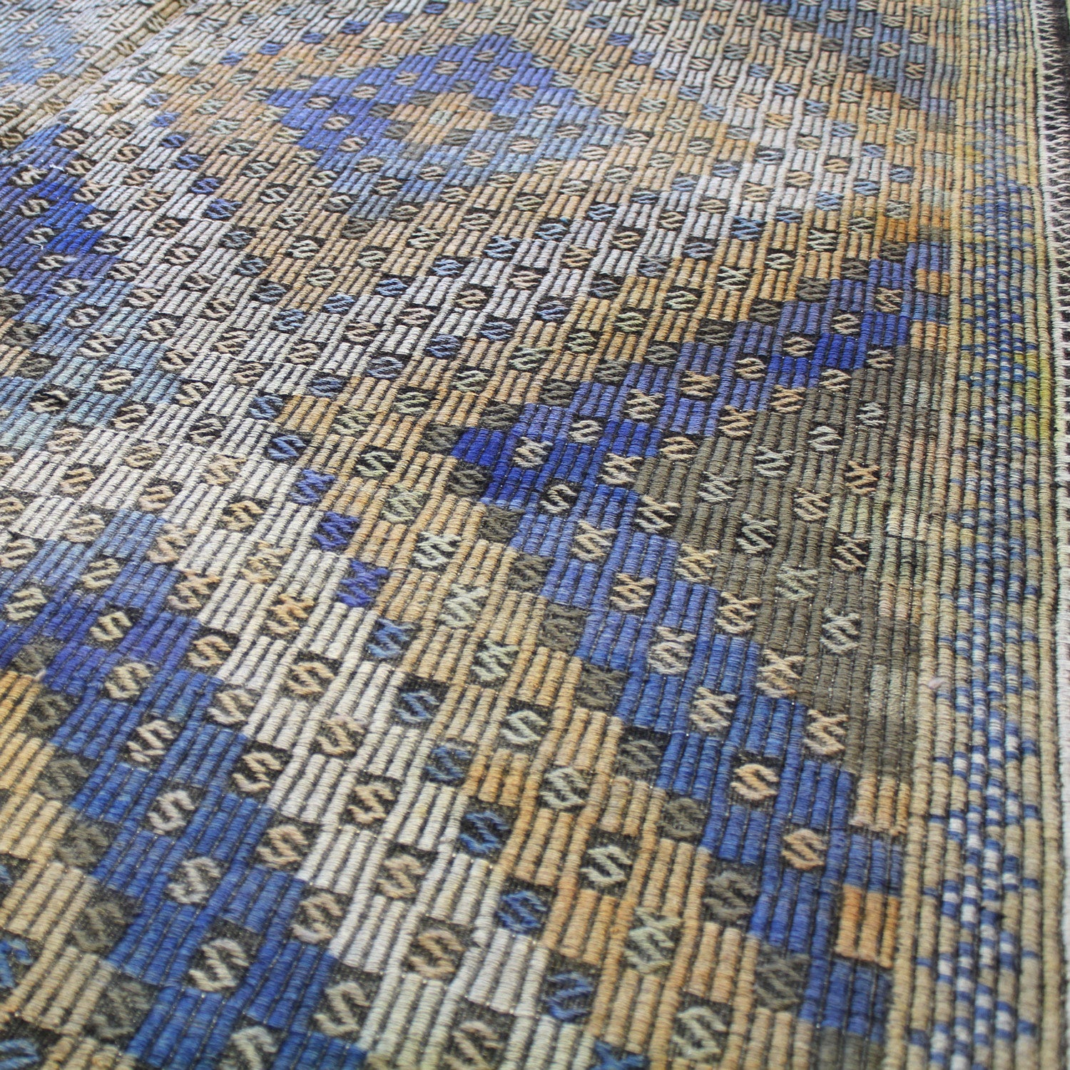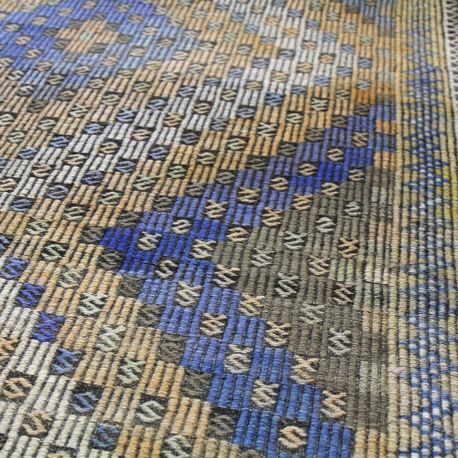 One of the fastest and easiest ways to breathe new life into your home’s décor is to add a stunning floor covering, like our Turkish Vintage Jijim Handwoven Tribal Rug (J59073). This tribal Kilim piece is blue on blonde with periwinkle accents. This vintage handwoven rug features a Jijim design motif, crafted in durable wool flatweave on a wool foundation. Plus, its size — 6' 1" X 11' 4" — will provide ample coverage. This means years of comfort, style, and enjoyment for you and your loved ones. Take the next step and get your Vintage Jijim Handwoven Tribal Rug right now.