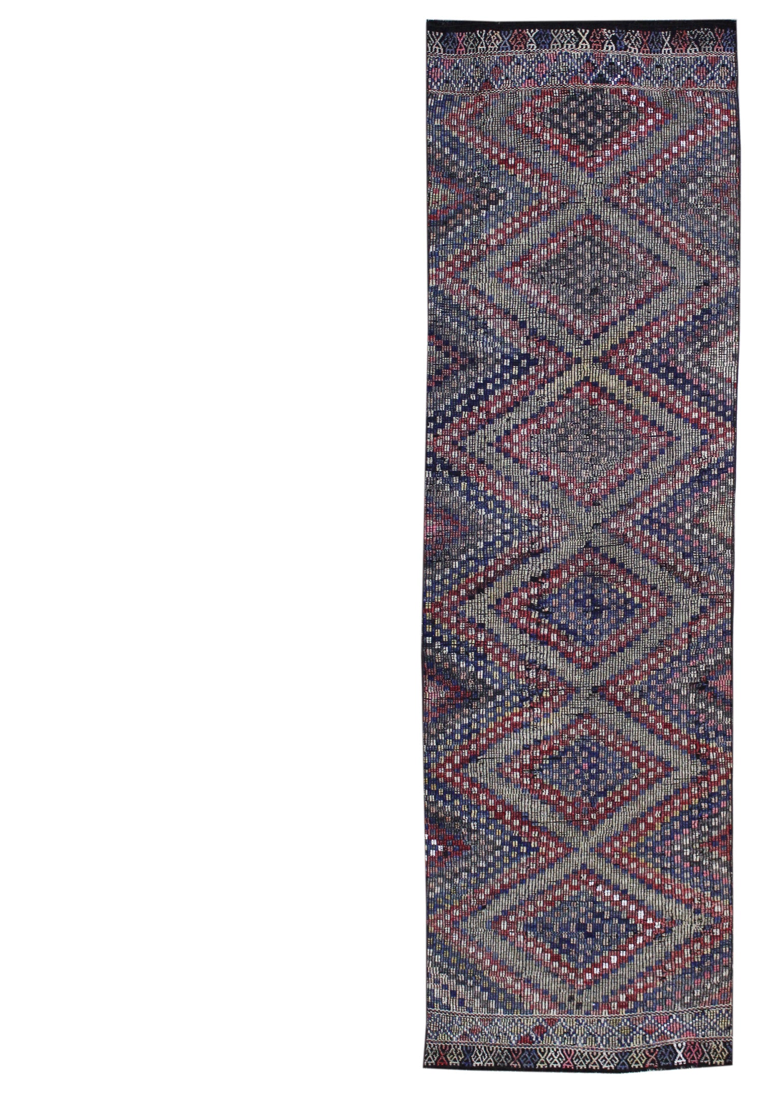 One of the fastest and easiest ways to breathe new life into your home’s décor is to add a stunning floor covering, like our Turkish Vintage Jijim Handwoven Tribal Rug (J59093). This tribal Kilim piece is blue on grape with red accents. This vintage handwoven rug features a Jijim design motif, crafted in durable wool flatweave on a wool foundation. Plus, its size — 3' 0" X 10' 0" — will provide ample coverage. This means years of comfort, style, and enjoyment for you and your loved ones. Take the next step and get your Vintage Jijim Handwoven Tribal Rug right now.