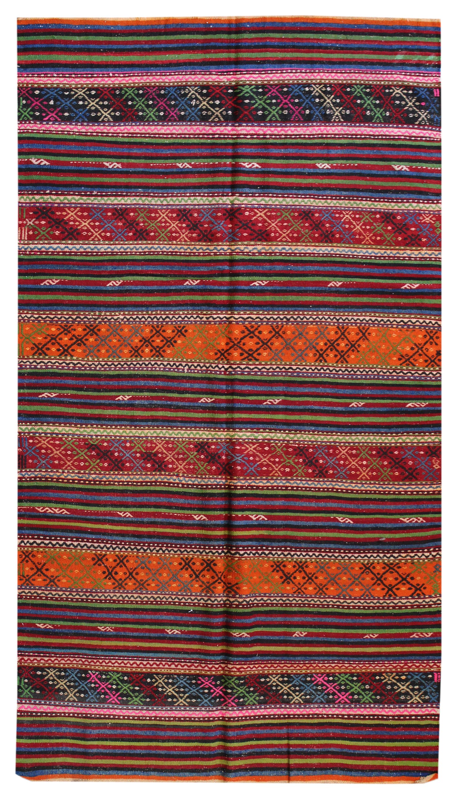 Vintage Kilim Tribal Turkish Jijim 5' 2" X 9' 1" Red Rug