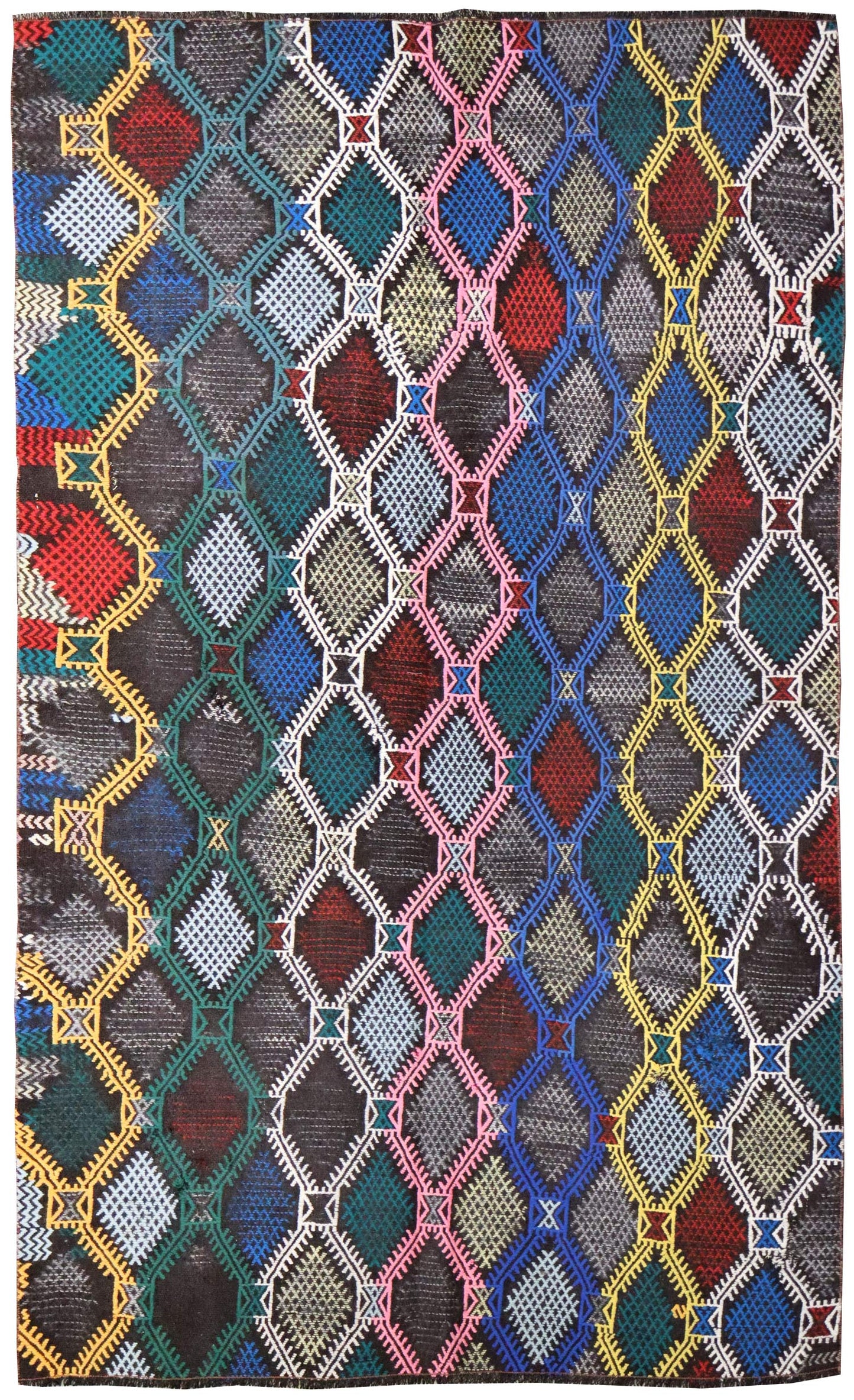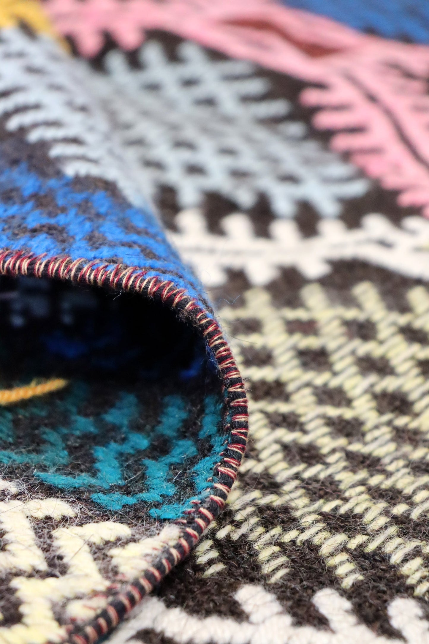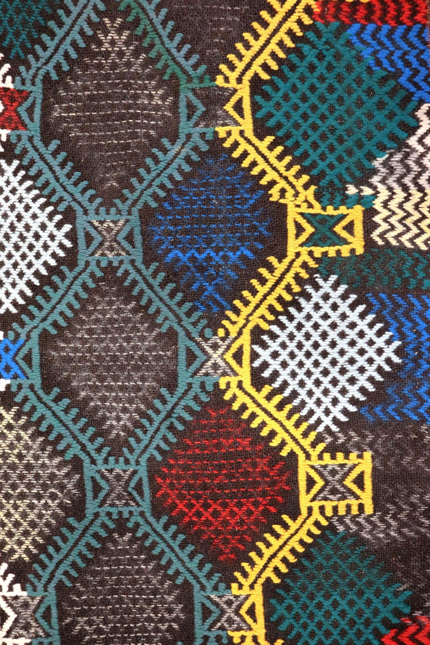 Show off your exquisite taste with our beautiful Vintage Jijim Handwoven Tribal Rug (J64715). It’s a prime example of a tribal Kilim done right and will add a unique, polished look to your space. Crafted mainly in grey and complemented with charcoal and royal blue, the Jijim design really pops. The wool flatweave surface is resilient yet comfortable and the wool foundation provides a sturdy base. This 4' 9" X 7' 9" handwoven rug is of vintage construction and Turkish origin. All in all, you’re going to love this piece and it’s going to be the perfect addition to your home. Make it happen today — with your own Vintage Jijim Handwoven Tribal Rug.