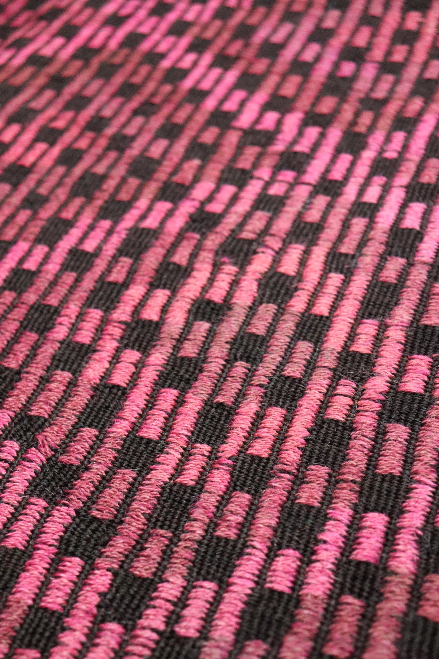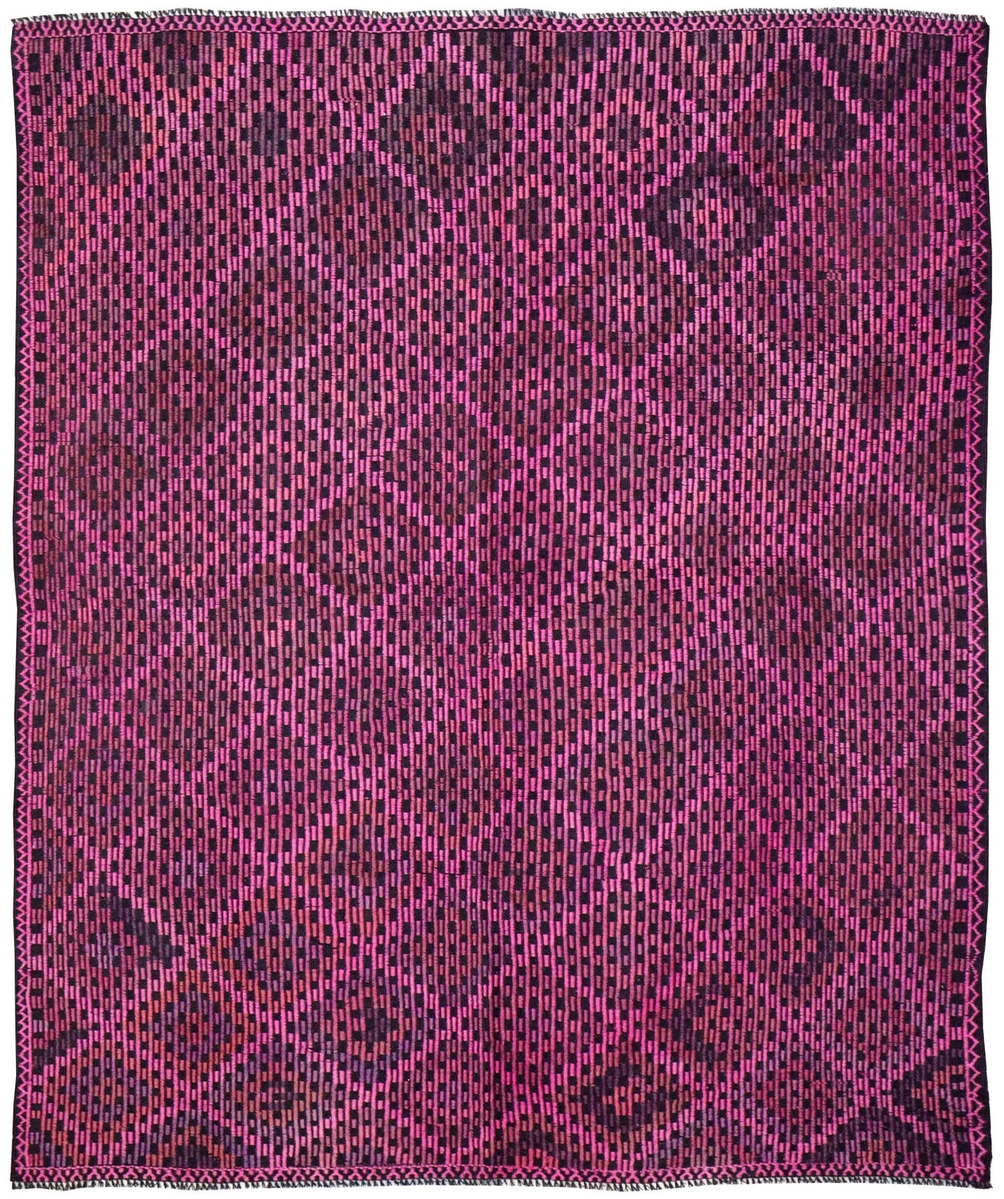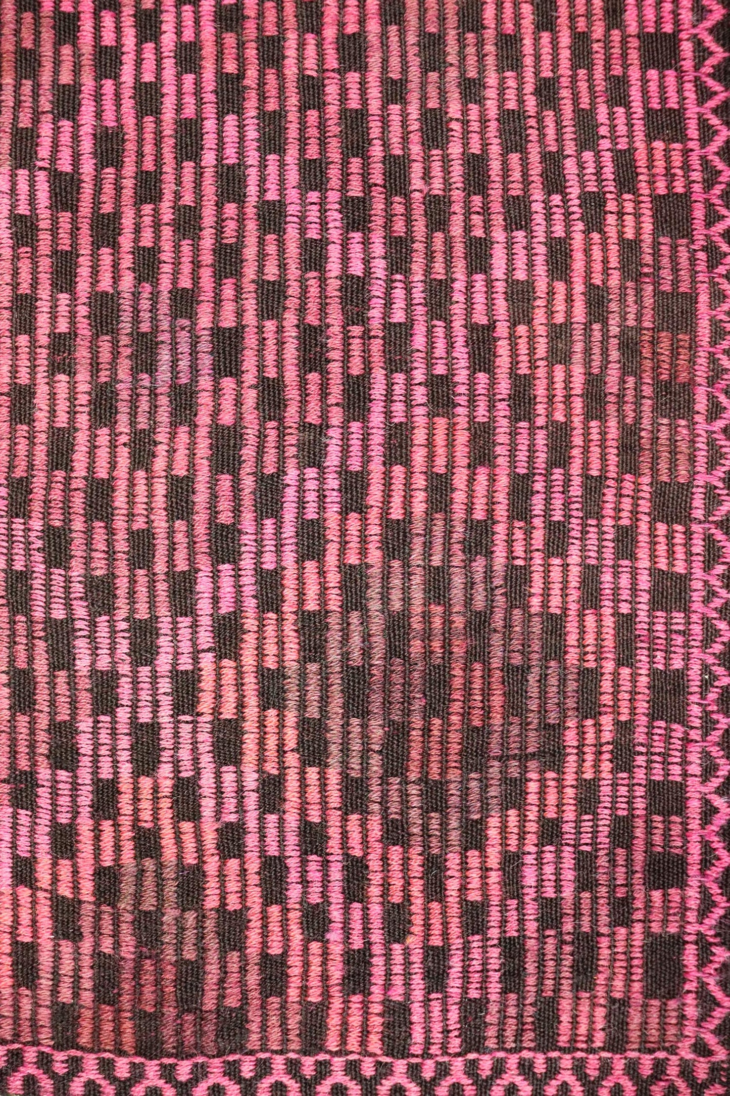 Show off your exquisite taste with our beautiful Vintage Jijim Handwoven Tribal Rug (J64728). It’s a prime example of a tribal Kilim done right and will add a unique, polished look to your space. Crafted mainly in pink and complemented with charcoal and fuchsia, the Jijim design really pops. The wool flatweave surface is resilient yet comfortable and the wool foundation provides a sturdy base. This 7' 5" X 9' 1" handwoven rug is of vintage construction and Turkish origin. All in all, you’re going to love this piece and it’s going to be the perfect addition to your home. Make it happen today — with your own Vintage Jijim Handwoven Tribal Rug.