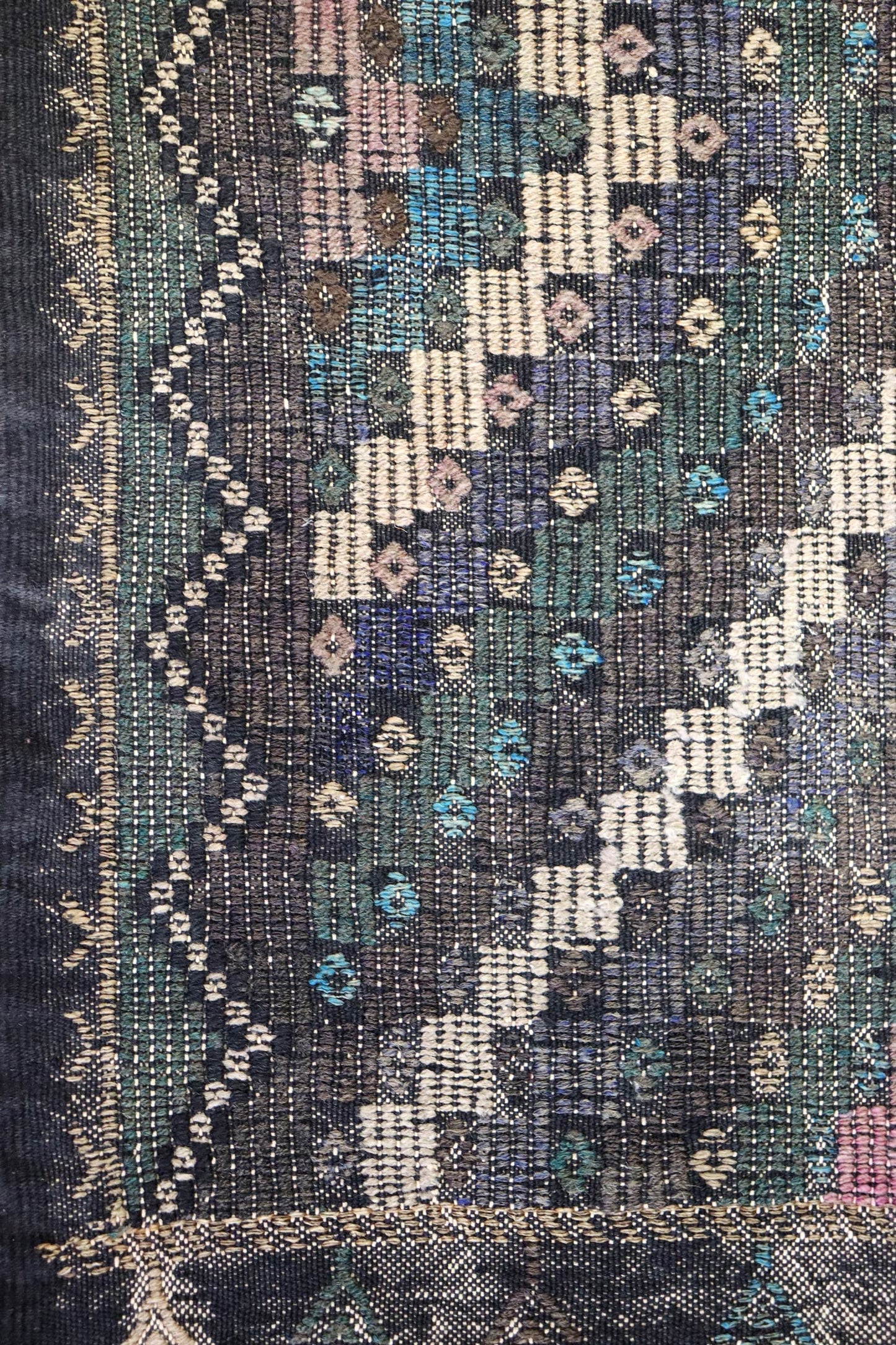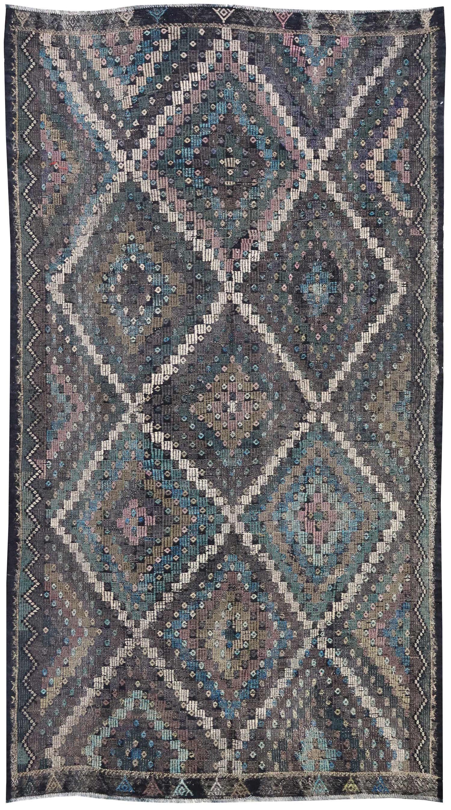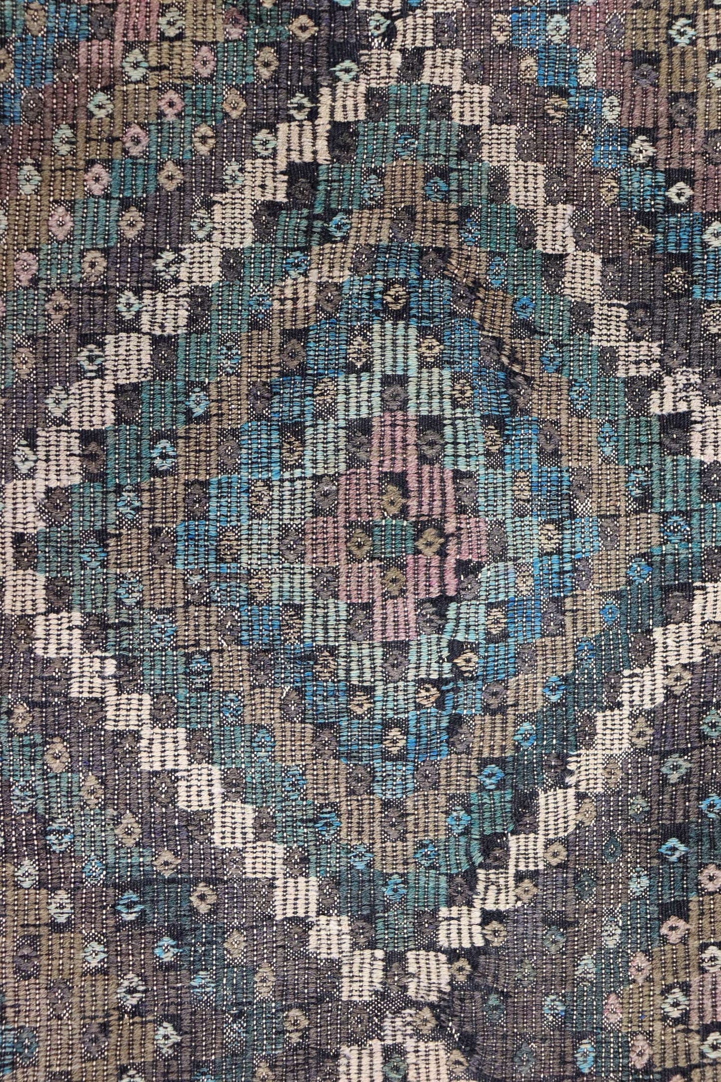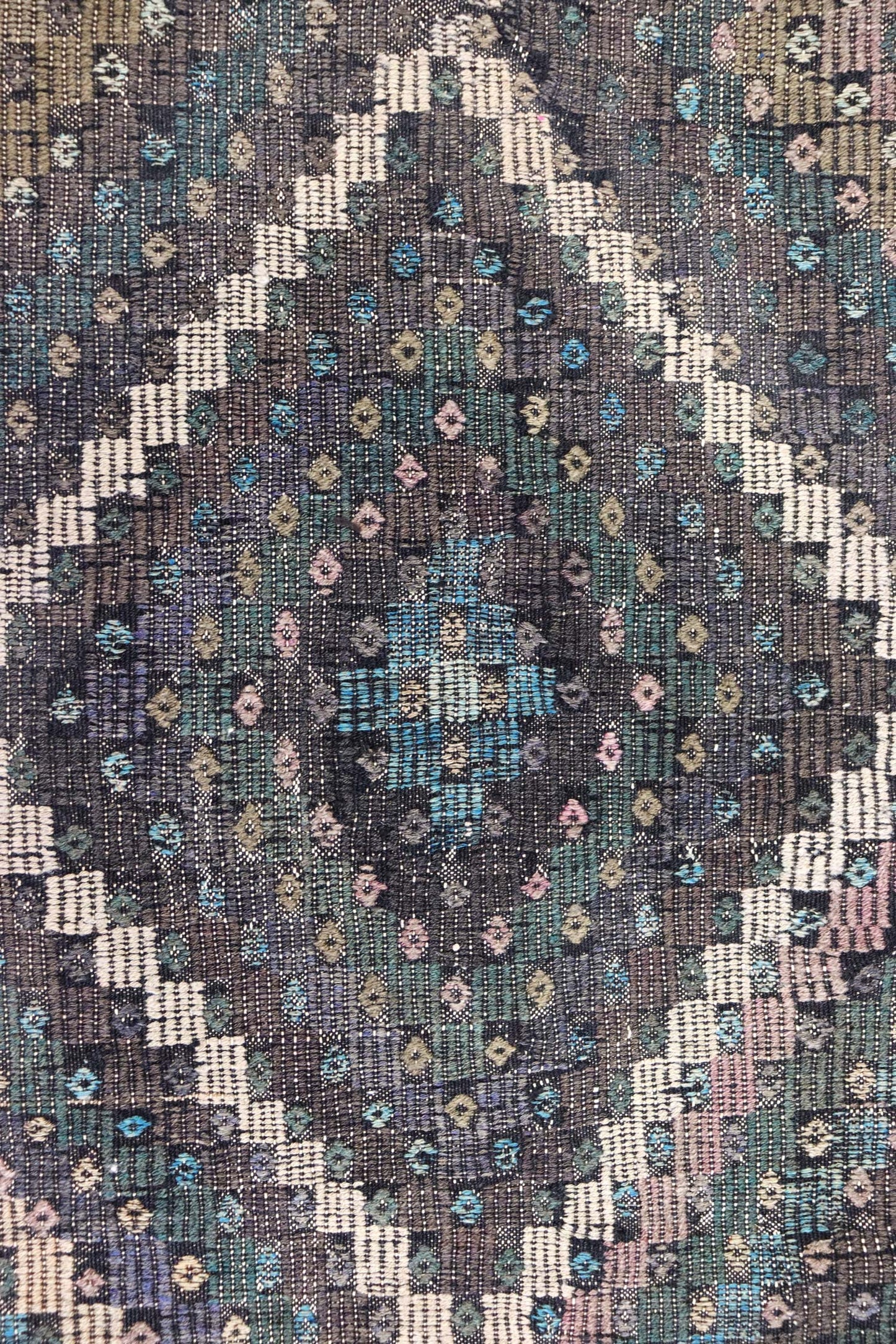Show off your exquisite taste with our beautiful Vintage Jijim Handwoven Tribal Rug (J64744). It’s a prime example of a tribal Kilim done right and will add a unique, polished look to your space. Crafted mainly in brown and complemented with teal and green, the Jijim design really pops. The wool flatweave surface is resilient yet comfortable and the wool foundation provides a sturdy base. This 5' 11" X 10' 3" handwoven rug is of vintage construction and Turkish origin. All in all, you’re going to love this piece and it’s going to be the perfect addition to your home. Make it happen today — with your own Vintage Jijim Handwoven Tribal Rug.