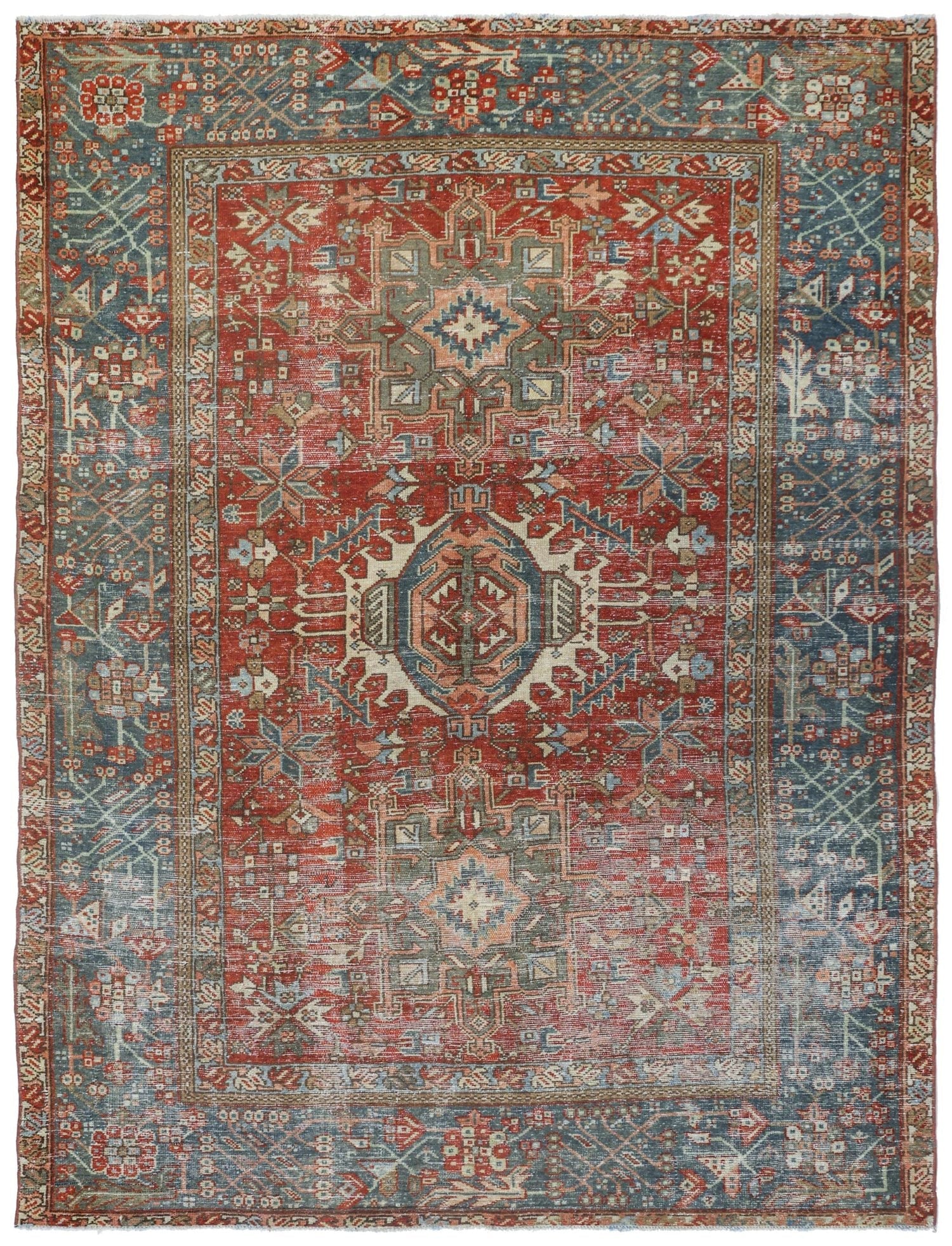 Vintage 1930 Nomadic Persian & Turkish Tribal Persian Karaja 4' 7" X 6' 1" Red Rug