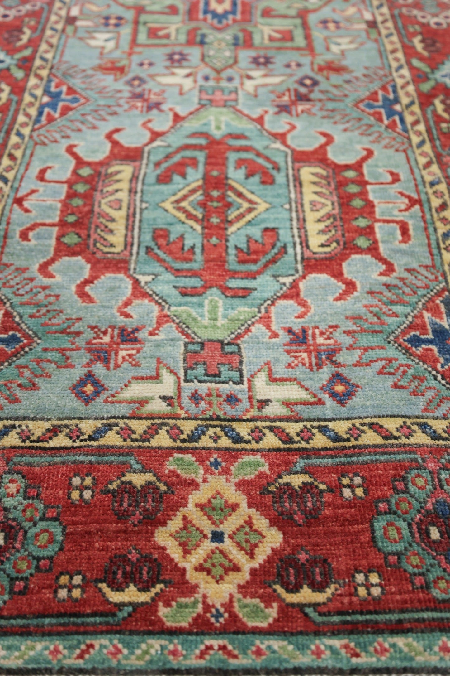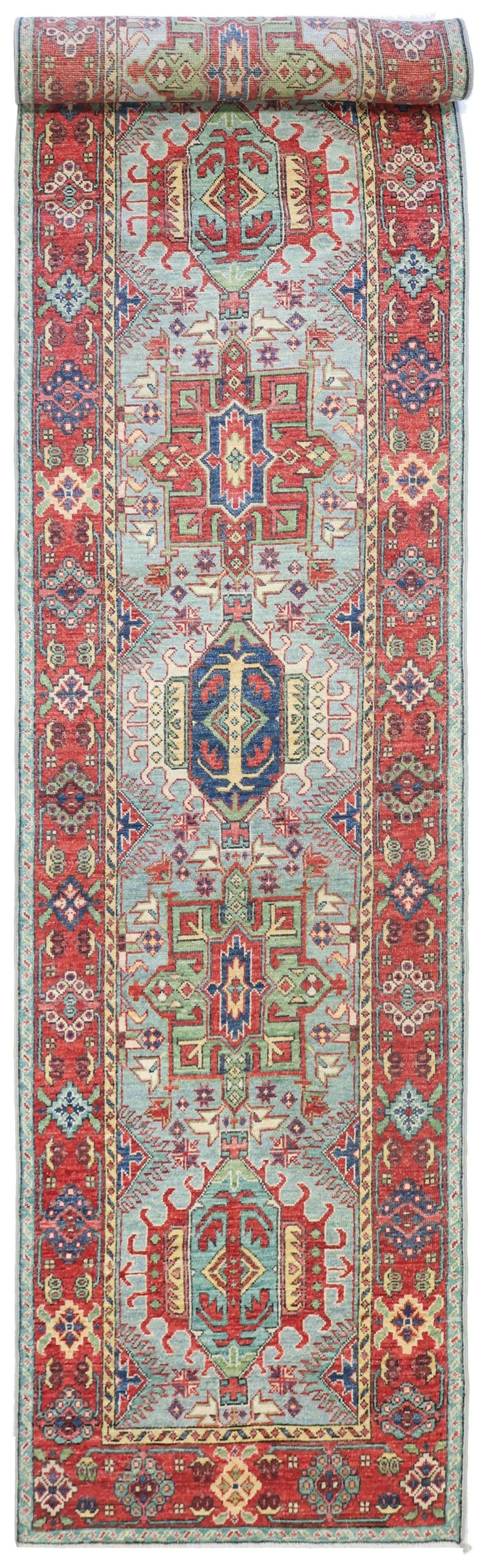 New Nomadic Persian & Turkish Tribal Aghani Karaja 2' 8" X 15' 9" Green Rug