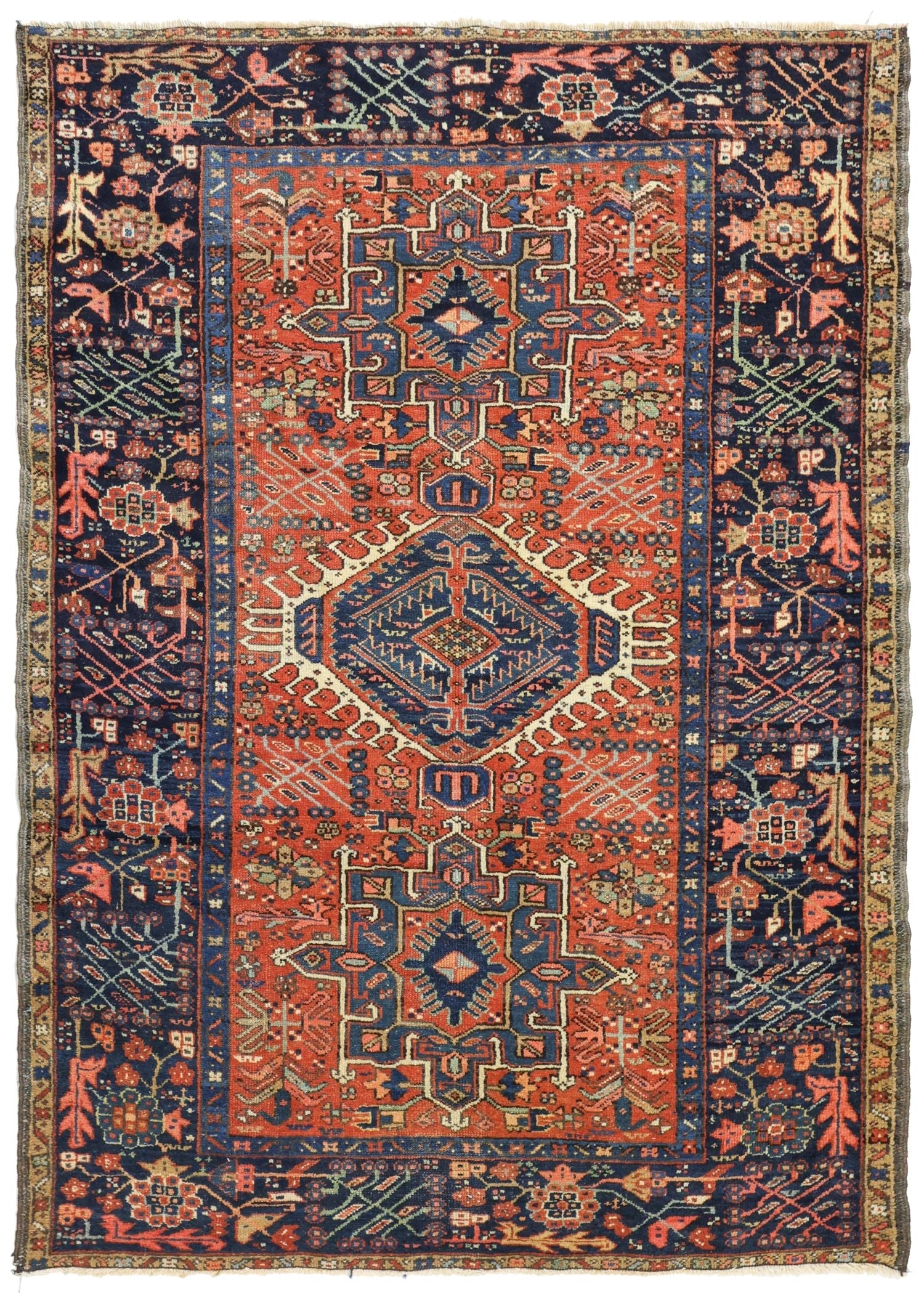 Antique 1925 Nomadic Persian & Turkish Tribal Persian Karaja 4' 7" X 6' 1" Red Rug