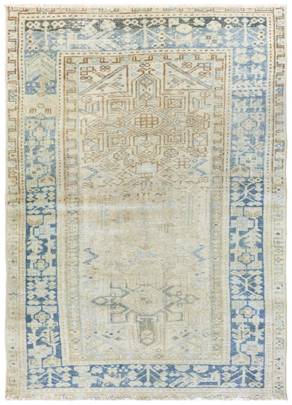 Vintage 1920 Tribal Persian Karaja 3' 1" X 4' 5" Beige Rug