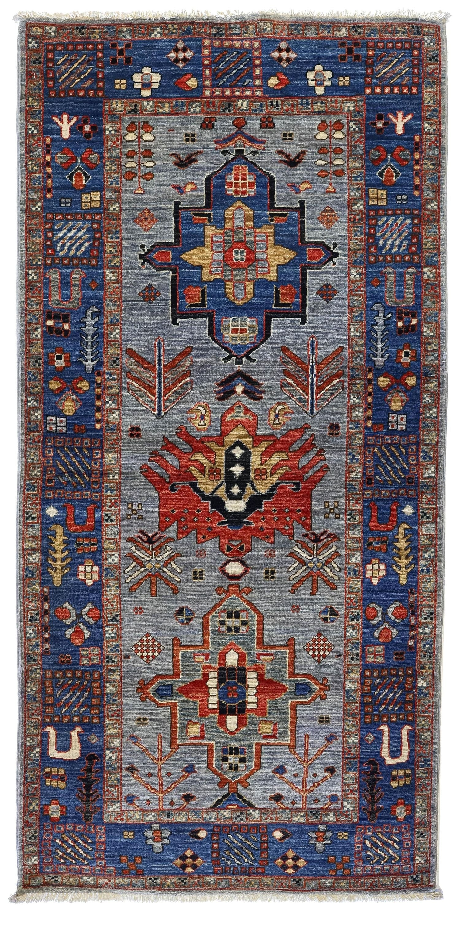 New Tribal Afghani Karaja 2' 10" X 5' 11" Blue Rug