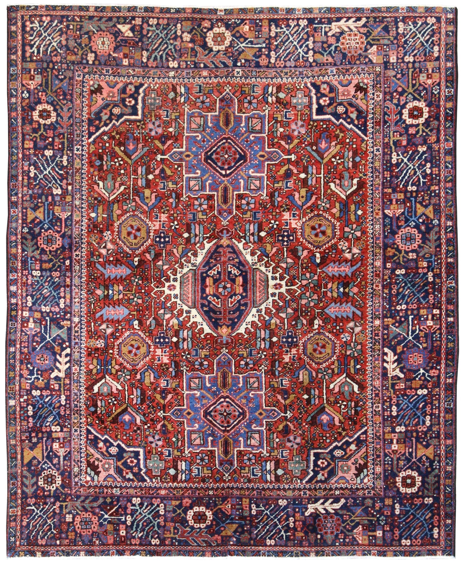Elevate your room’s style with our Antique Karaja Handwoven Tribal Rug (JF8507). The tribal Nomadic Persian & Turkish style, with its Karaja motif, is definitely a stunner that you’ll be proud to show off in your home. Its distinctive red, rust and navy palette will add charm, elegance, and that little bit of that ever-elusive je ne sais quoi. Plus, the wool pile on a cotton foundation used in this 5' 0" X 5' 10" rug accentuates its allure. But, this rug isn’t just worthy of gracing the pages of a design magazine. With its masterful Persian handwoven construction, this antique rug from around 1925 will be a prized possession for decades to come. Get your own show-stopping Antique Karaja Handwoven Tribal Rug today!