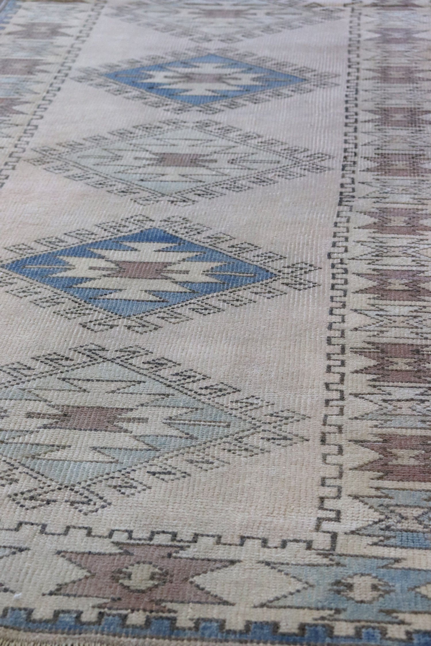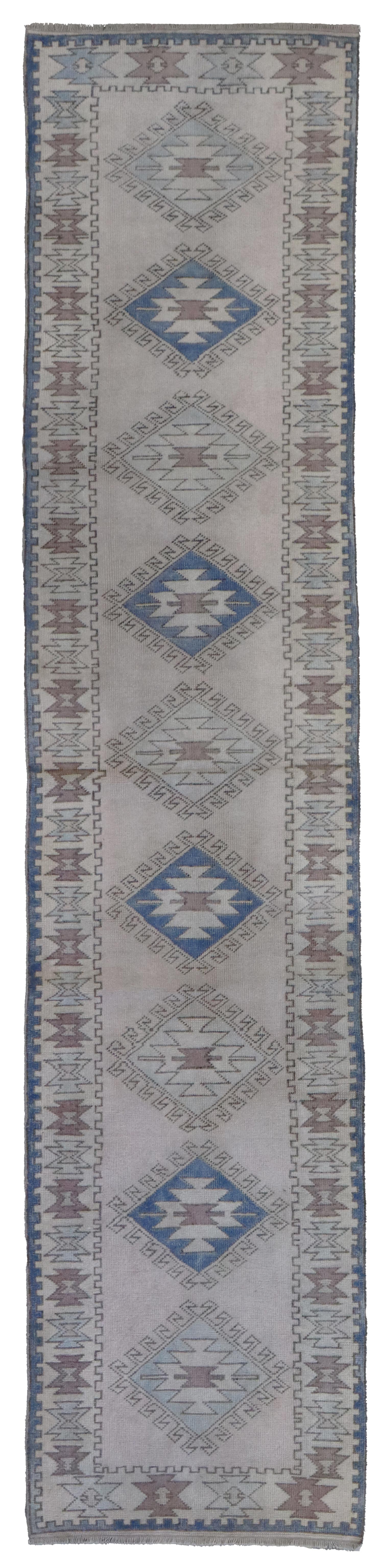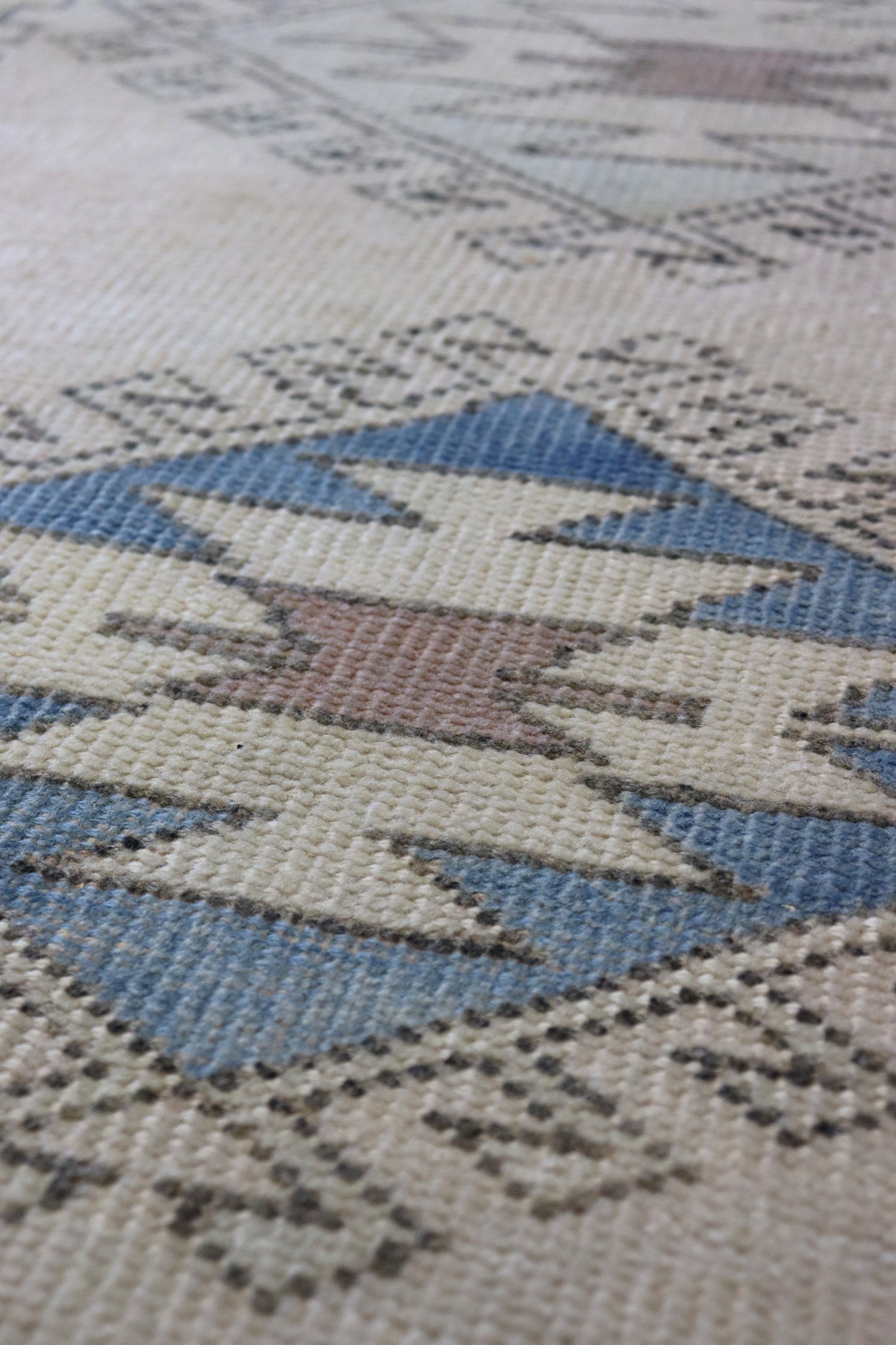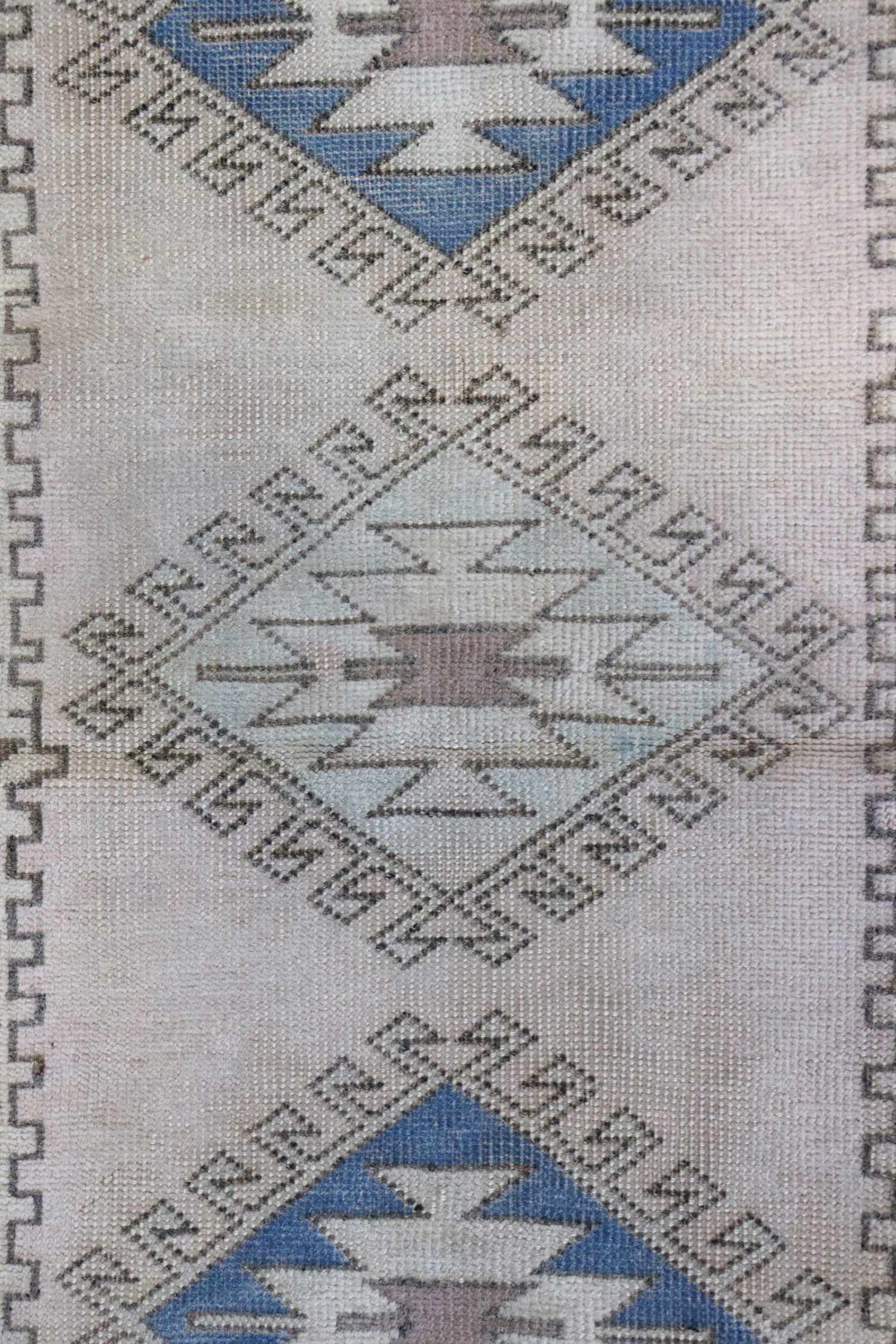 Change things up — transform your space with our amazing Vintage Kars Handwoven Tribal Rug (J66672). This vintage 2' 9" X 11' 8" rug is in the tribal Vintage Turkish Village style and features a stunning Kars design that you’ll absolutely love. This rug is primarily ivory with blue accents. You’ll also appreciate the wool pile on a wool foundation, which feels great underfoot! As with other handwoven Turkish rugs dating to around 1960, this one’s made to last. You’ll be enjoying the elements of interest and sophistication it adds to your home for years. Don’t delay — refresh your room today with your own Vintage Kars Handwoven Tribal Rug.