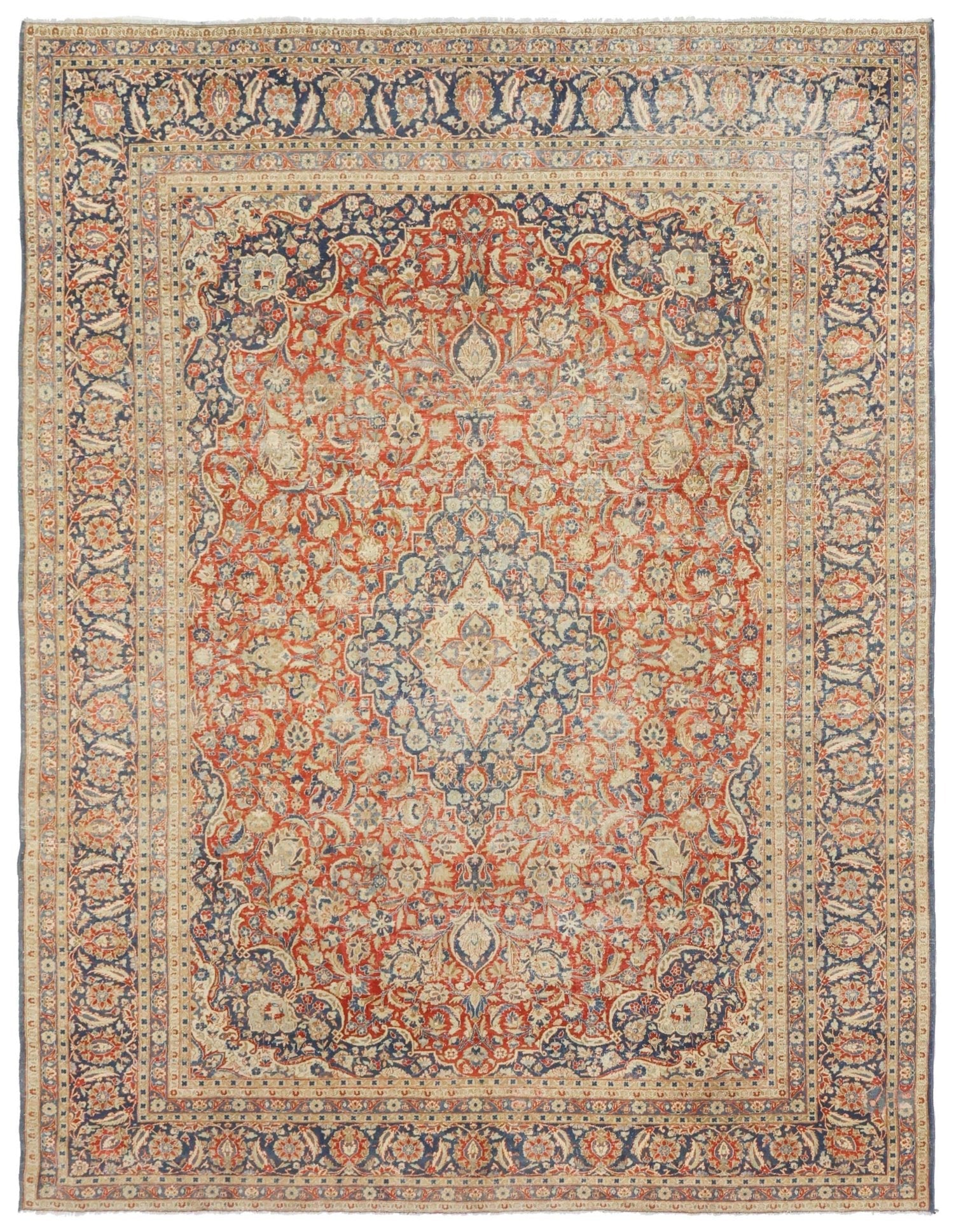 Vintage 1930 Formal Classic Persian Traditional Persian Kashan 9' 0" X 11' 6" Red Rug